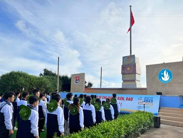 Đoàn đã cùng các chiến sĩ tình nguyện tham gia buổi chào cờ đầu tuần tại cột cờ Tổ quốc trên đảo. Đây là một trong những địa điểm được Ban Chỉ huy chiến dịch xác lập hoạt động tại chiến dịch tình nguyện Hè năm nay.