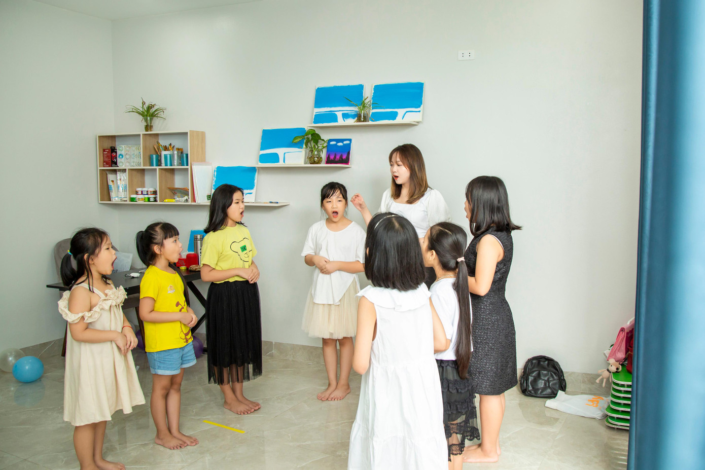 | Thanh Nhàn giảng dạy tạicác lớp MC nhí. |