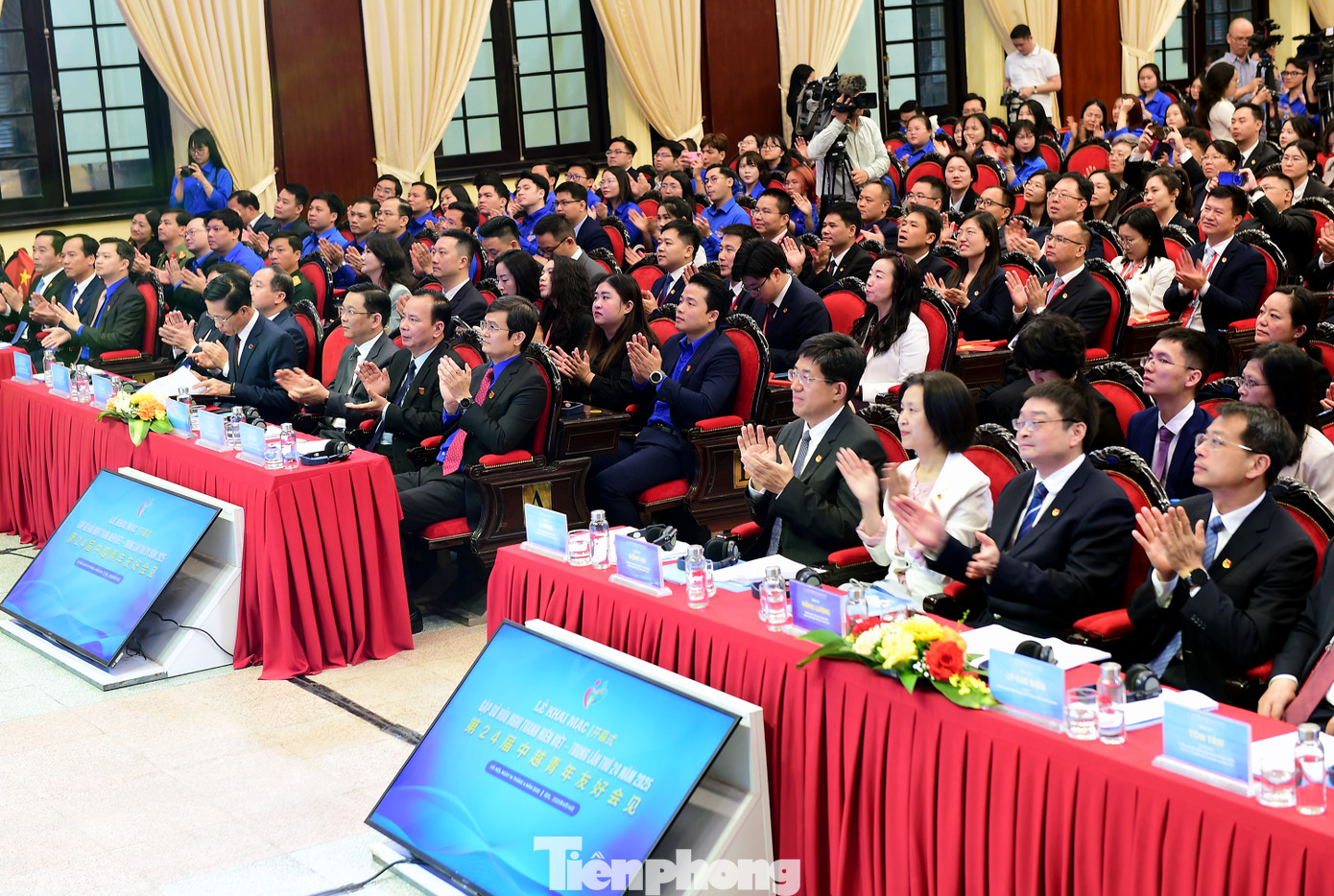 | Bí thư thứ nhất Ban Chấp hành T.Ư Đoàn TNCS Hồ Chí Minh Bùi Quang Huy và Bí thư thứ nhất Ban Bí thư T.Ư Đoàn TNCS Trung Quốc và các đại biểu tham dự lễ khai mạc. Ảnh: Xuân Tùng |