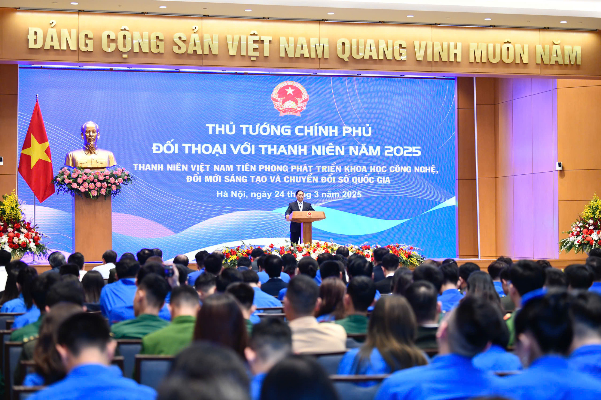 Chiều 24/3, tại chương trình Thủ tướng Chính phủ đối thoại với thanh niên Việt Nam năm 2025 với chủ đề “Thanh niên Việt Nam tiên phong phát triển khoa học công nghệ, đổi mới sáng tạo và chuyển đổi số quốc gia”, Thủ tướng hoan nghênh và đánh giá cao sáng kiến của Trung ương Đoàn về chủ đề đối thoại năm nay, đặc biệt là những ý kiến tâm huyết, trách nhiệm, chia sẻ, đề xuất, kiến nghị của các bạn thanh niên trong chương trình.