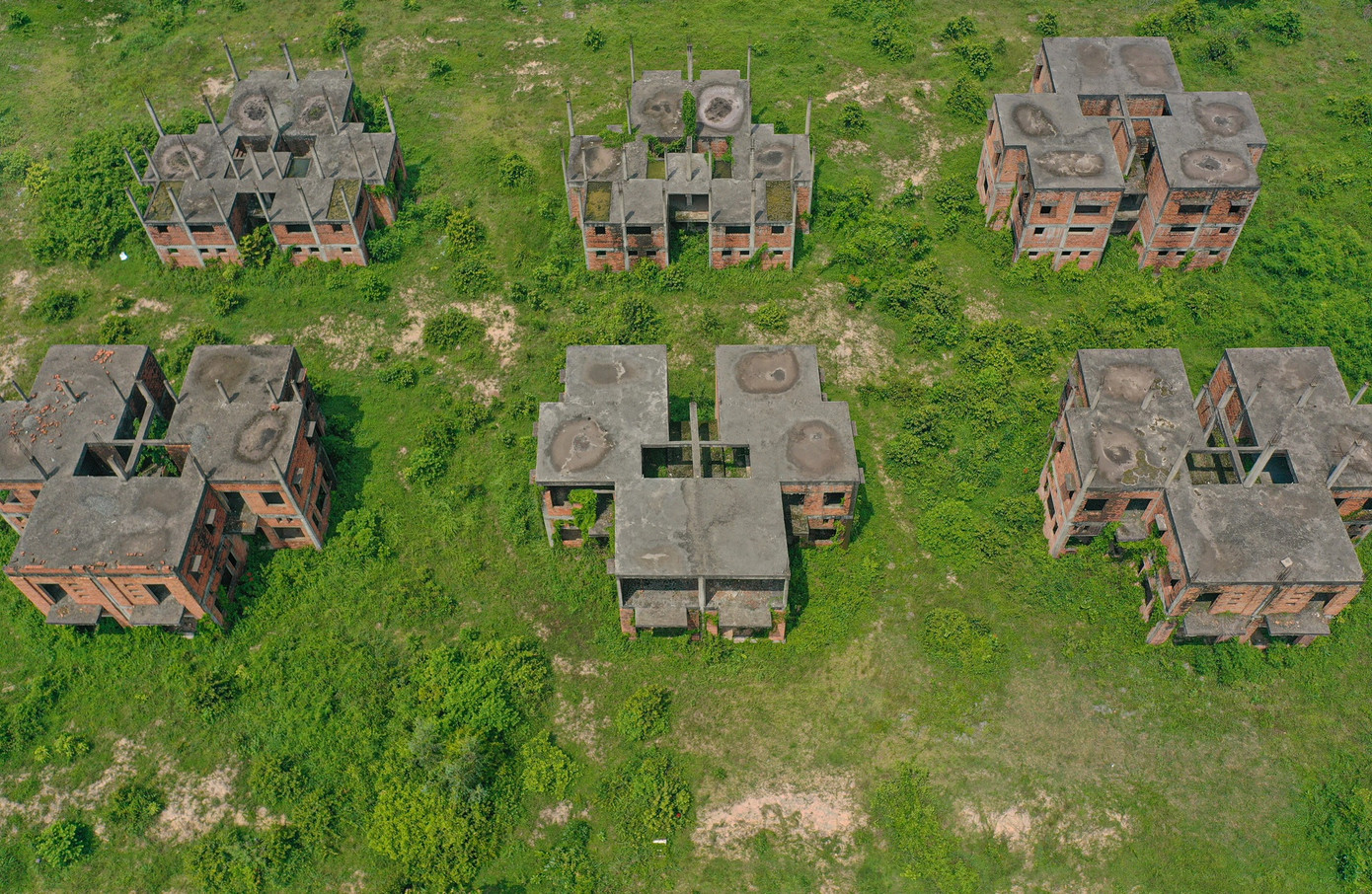 Các dự án có quy mô hàng trăm hecta, cách đường vành đai 3 chỉ 6km nhưng suốt 20 năm nay hầu như không có người ở. Thay vào đó là những ngôi nhà xây xong phần thô bỏ dở khắp nơi, những bãi đất hoang cỏ mọc um tùm. Quang cảnh khu đô thị vắng vẻ, quạnh hiu.