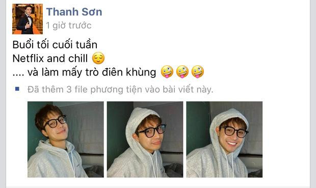 Mới đây, Thanh Sơn (phim 11 tháng 5 ngày) có khoe loạt ảnh mới trên trang cá nhân cùng chú thích "Buổi tối cuối tuần. Netflix and chill và làm mấy trò điên khùng". Có thể nam diễn viên muốn kể rằng anh xem phim trên Netflix, thư giãn và bày trò nhí nhố.