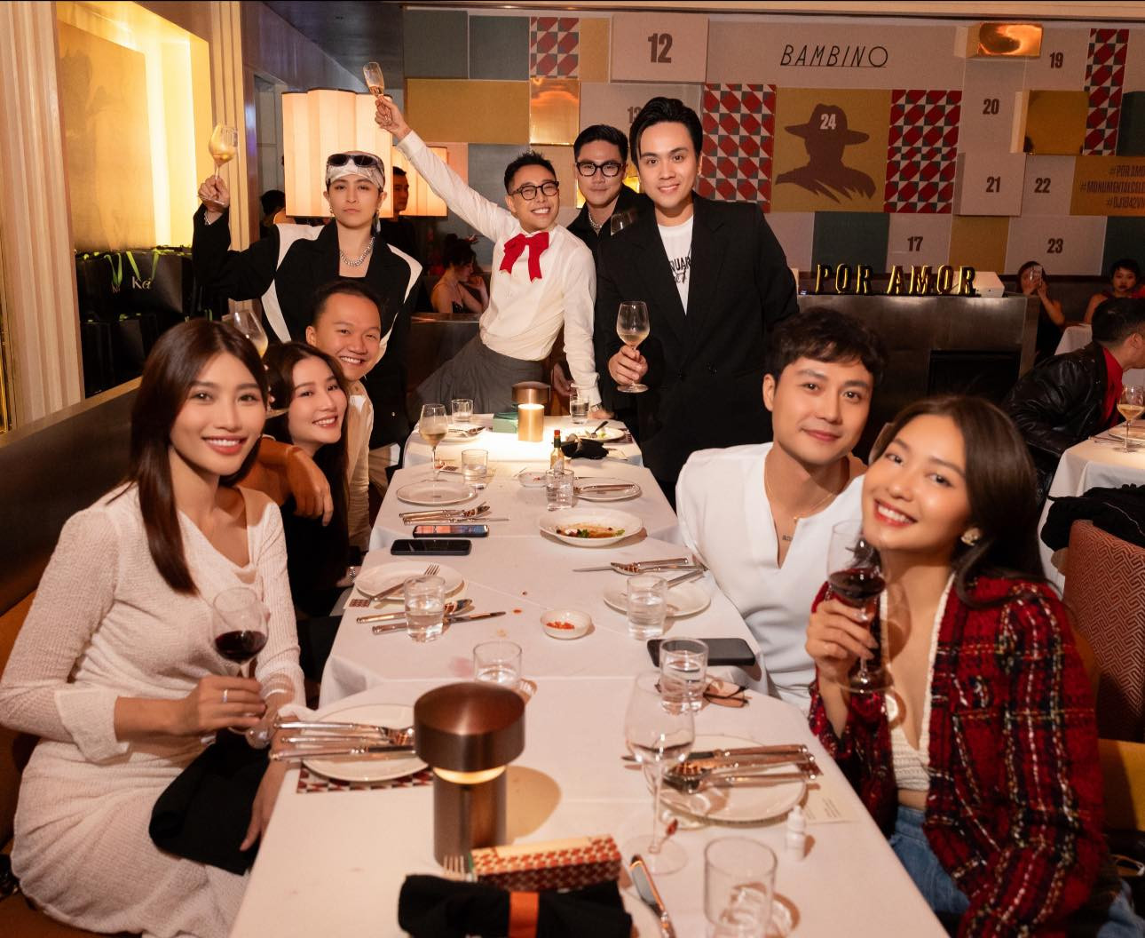 Mới đây, stylist Hoàng Ku có tổ chức tiệc cuối năm cùng nhiều nghệ sĩ. Và một lần nữa, Khả Ngân cùng Thanh Sơn lại khiến cư dân mạng chú ý khi ngồi sát bên nhau như thế này.