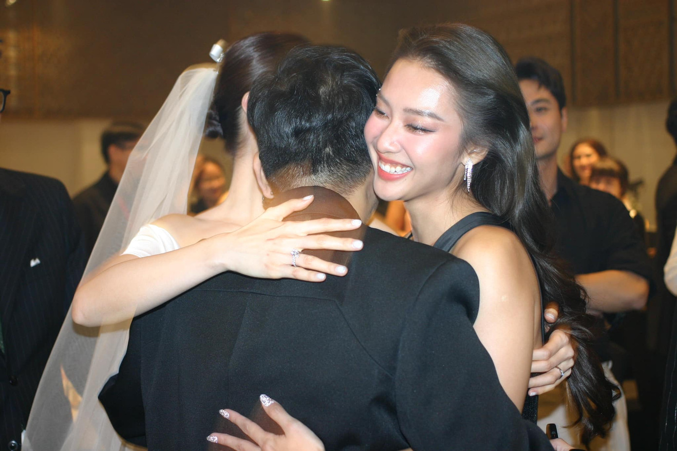 Thậm chí khi Khả Ngân khoe ảnh chụp trong đám cưới, netizen còn tinh mắt nhận ra một khoảnh khắc khi Khả Ngân chúc mừng cô dâu chú rể, Thanh Sơn đứng ở phía sau nhìn về phía “người yêu tin đồn” vô cùng dịu dàng.