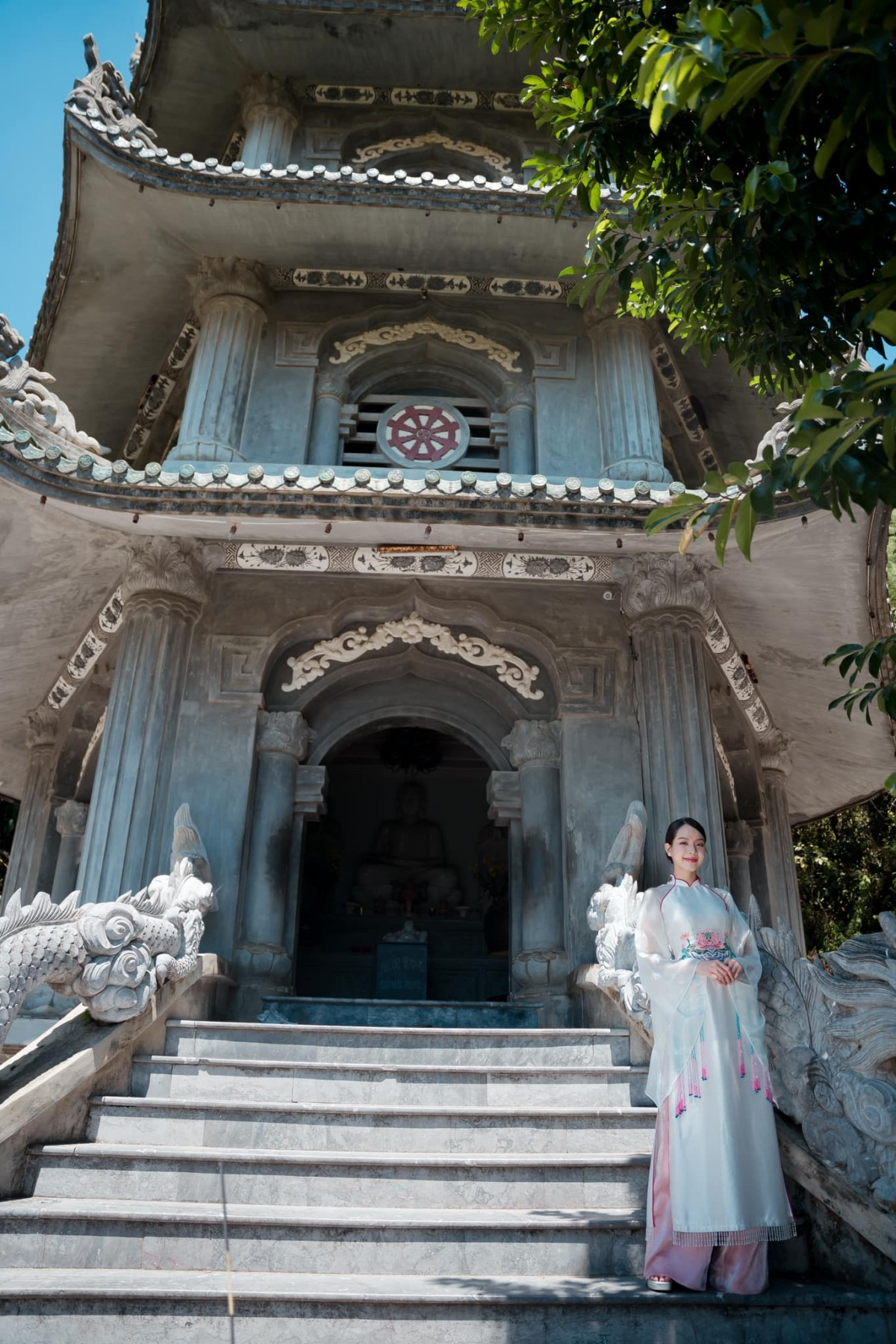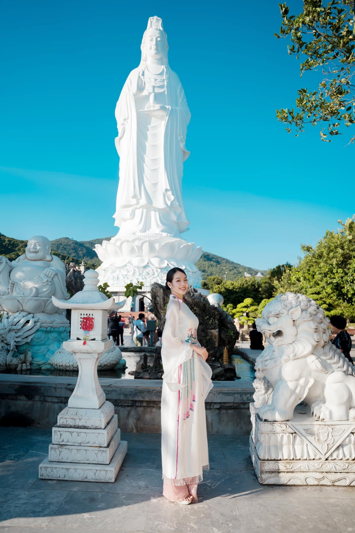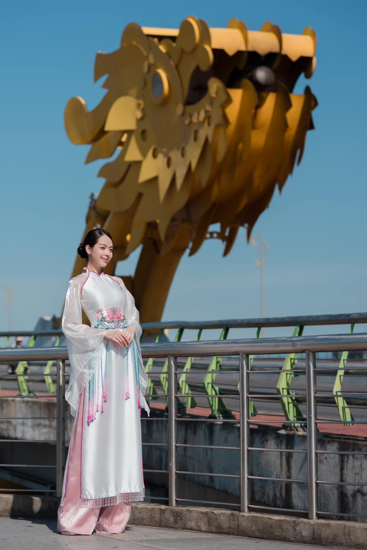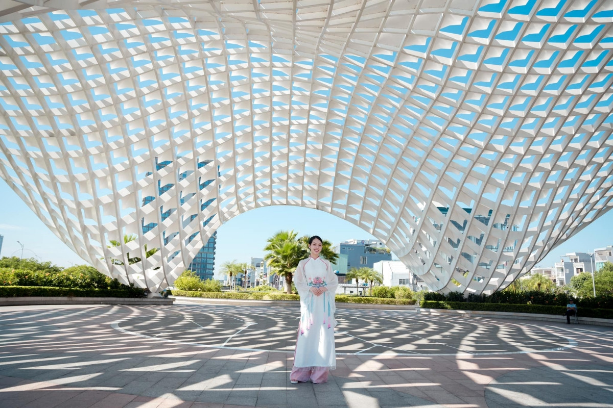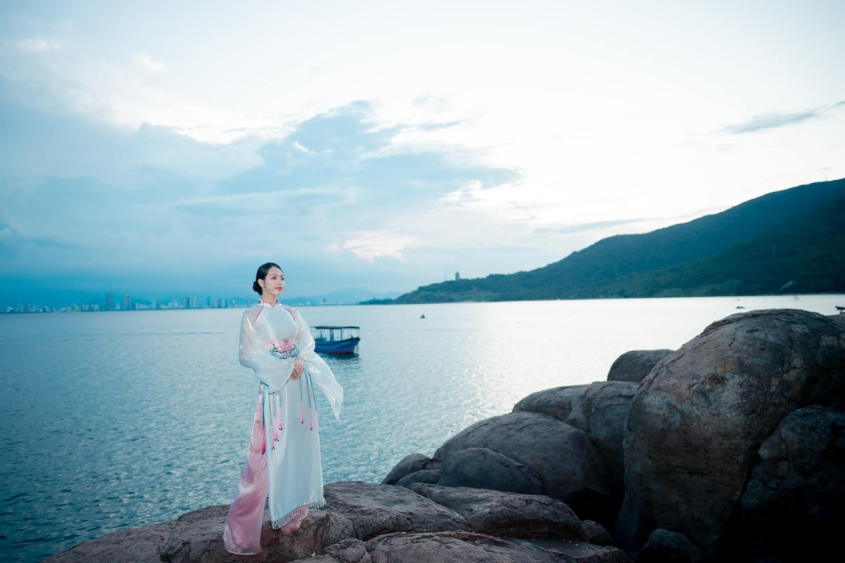 Trong loạt ảnh áo dài mới nhất, Hoa hậu Thanh Thủy chụp tại các địa danh đặc trưng của thành phố Đà Nẵng, quê hương của nàng hậu.