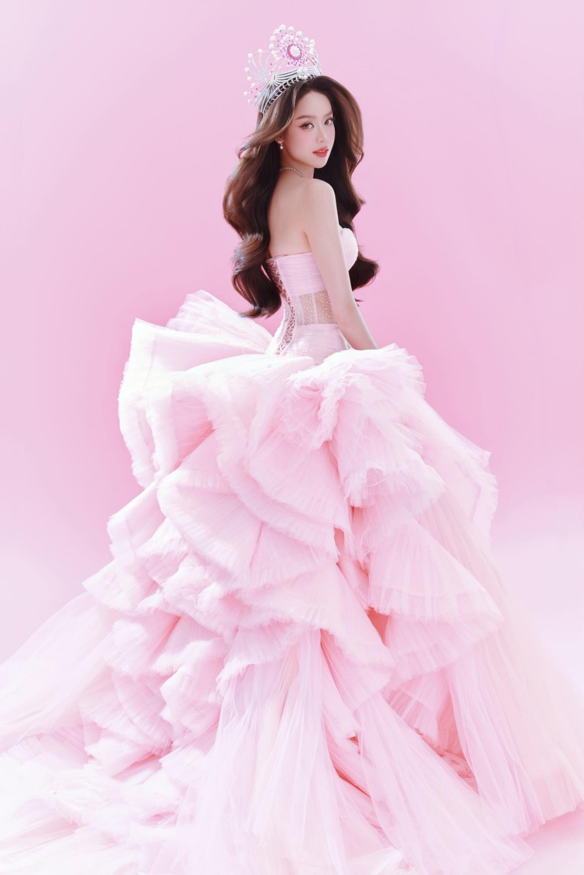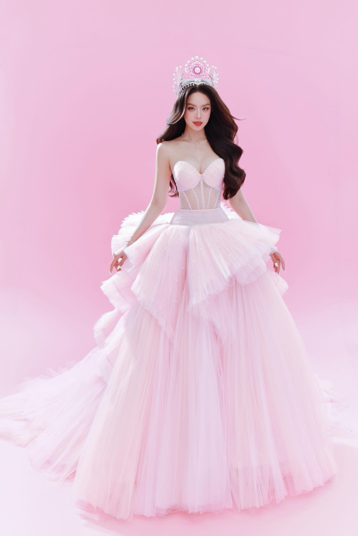 Trên trang cá nhân, nàng hậu chia sẻ hình ảnh mẫu váy sẽ cùng cô xuất hiện trong giây phút quan trọng này, đây là một thiết kế dạ hội của NTK Đỗ Long. Tựa đóa hoa đào đọng sương trong khoảnh khắc tinh khôi nhất, Thanh Thủy khoe trọn vẻ đẹp thanh toát, quyến rũ trong thiết kế Bloom Aura Dress. Lớp lưới cao cấp dập ly ôm nhẹ đường cong mềm mại, corset xuyên thấu đính kết pha lê lấp lánh như sương mai phủ trên cánh hoa, cùng tùng váy tầng bồng xoè bất đối xứng bay bổng, tất cả cùng tôn lên thần thái rạng ngời của nàng hậu.