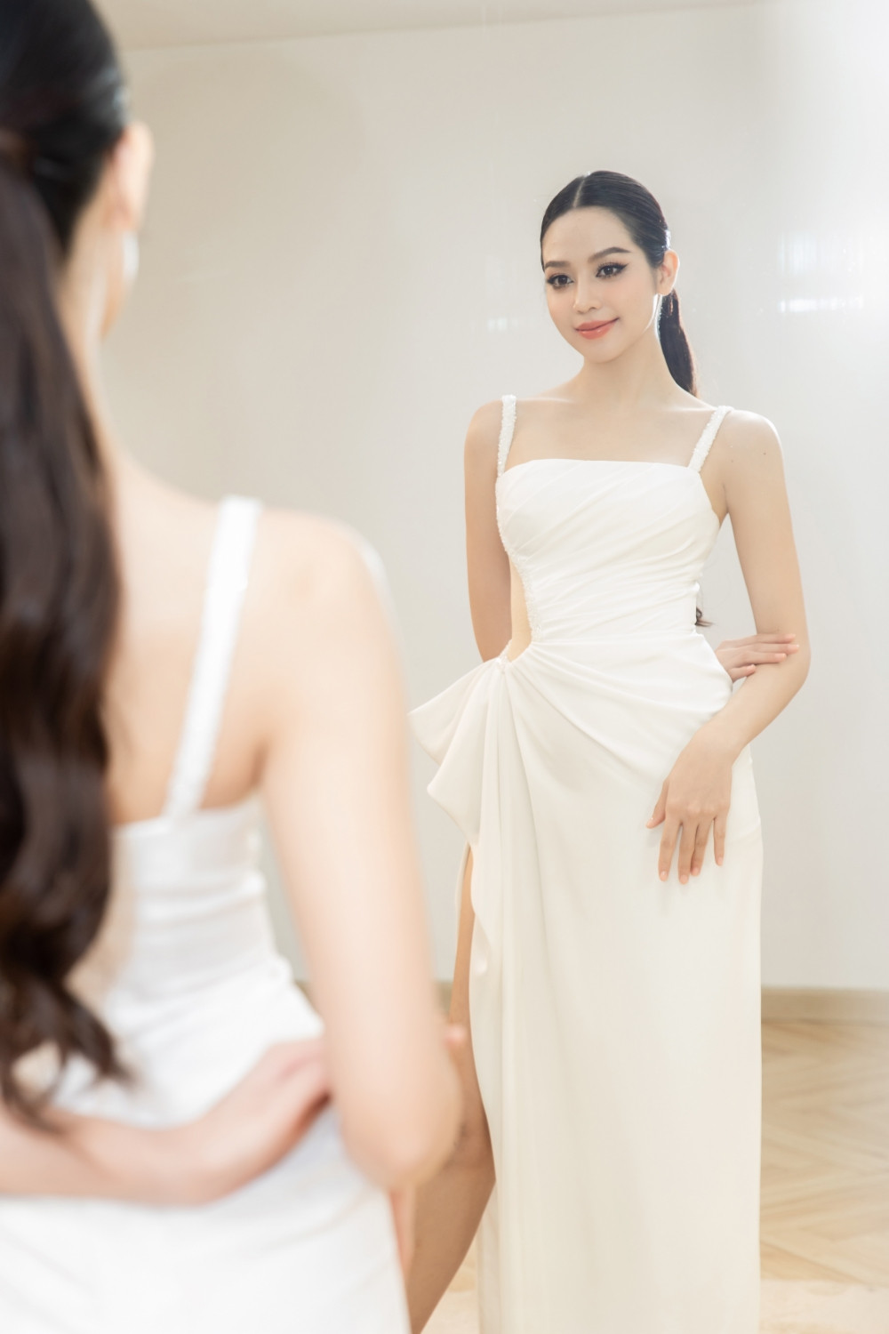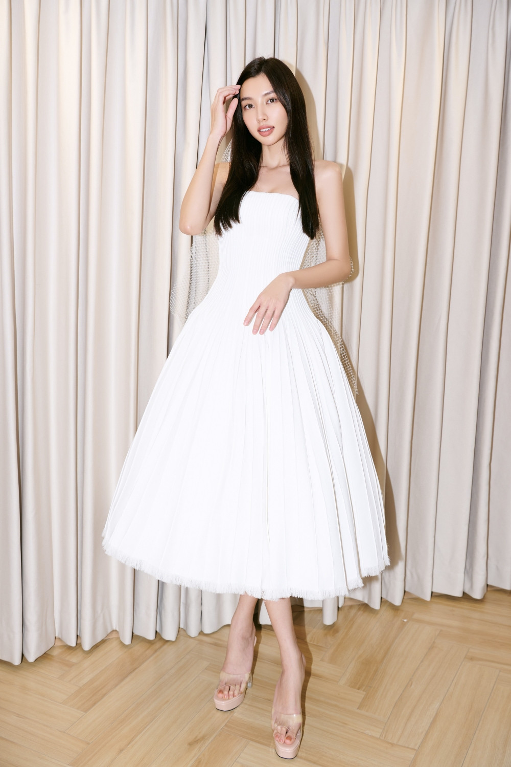 Váy trắng có thiết kế cut-out phần eo và xẻ tà cao giúp khoe đôi chân dài nổi bật. Người đẹp được nhận xét thần thái ngày càng sắc sảo hơn.