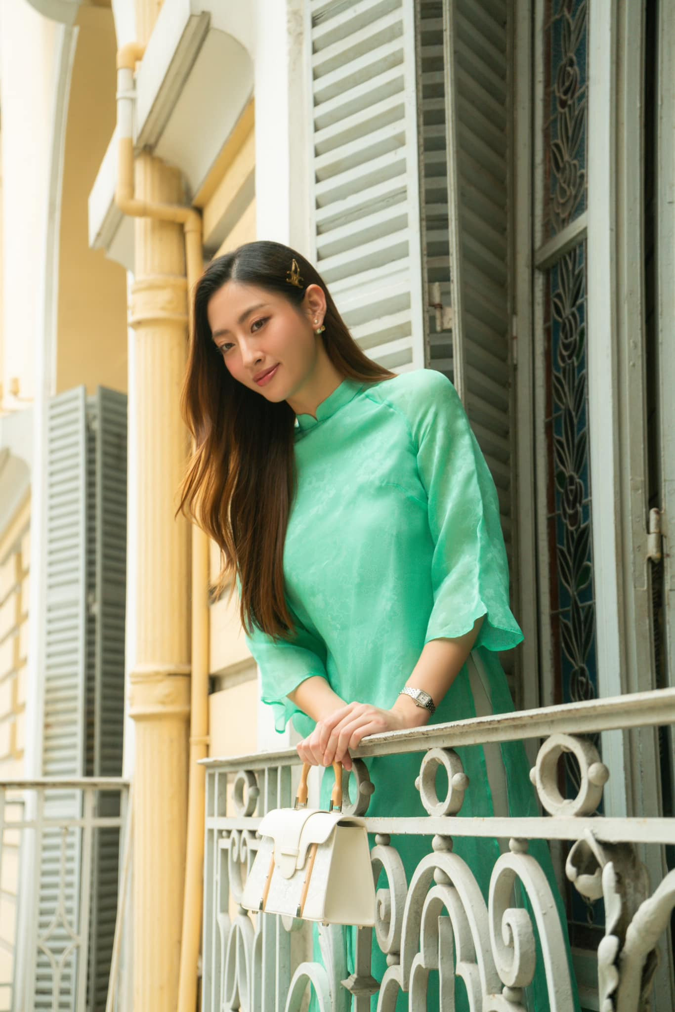 Hoa hậu Lương Thùy Linh thì phá cách hơn một chút khi chọn trang phục màu xanh lá cho những ngày đầu năm mới. Nhưng lựa chọn này của Miss World Vietnam 2019 cũng rất thông minh, sẽ hạn chế đụng hàng màu sắc mà vẫn mang lại không khí tươi mới vui vẻ cho dịp Tết.