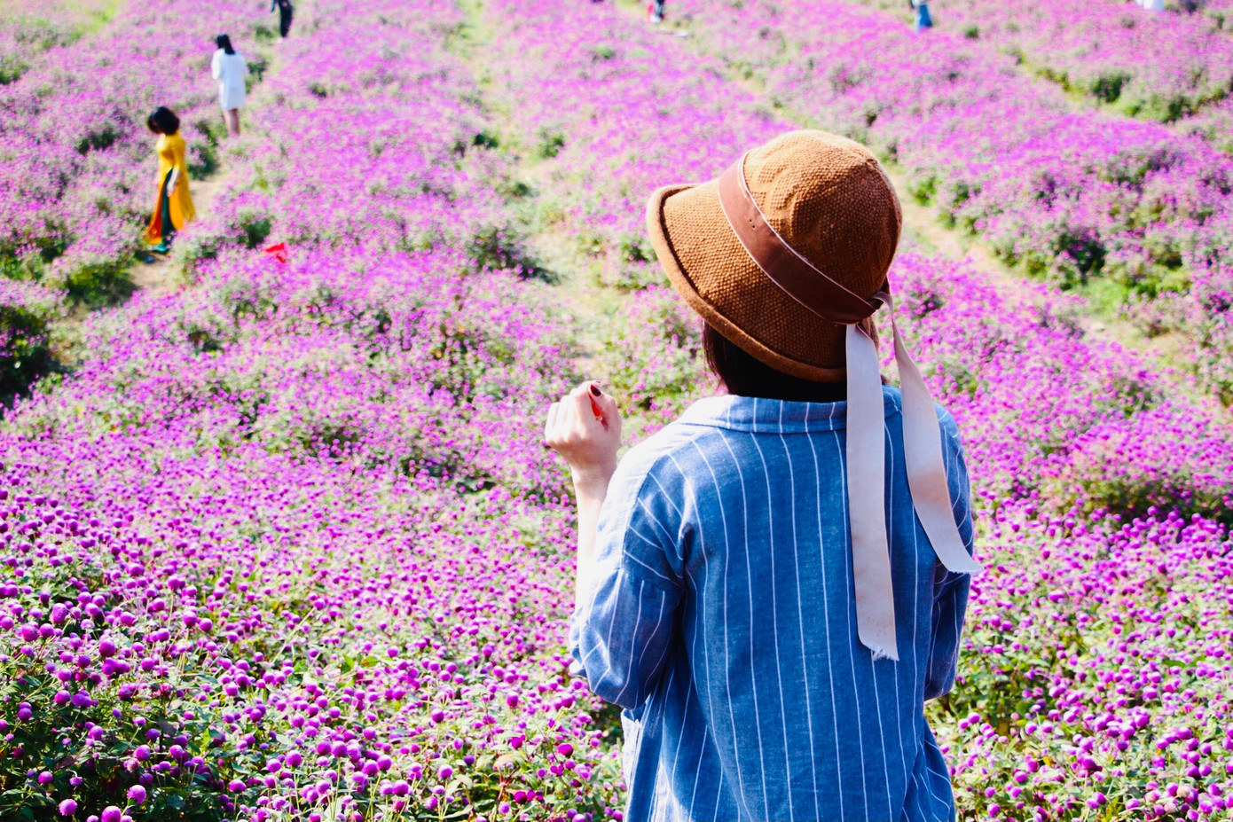 | Những ngày đầu tháng 12, cánh đồng hoa bách nhật đẹp như trời Âu bắt đầu bung nở. Khu vườn tím hồng rộng hơn 10.000m2 với khoảng 130.000 cây ở đường Thạch Cầu, quận Long Biên thu hút đông người trẻ, gia đình đến tham quan vào dịp cuối tuần. |