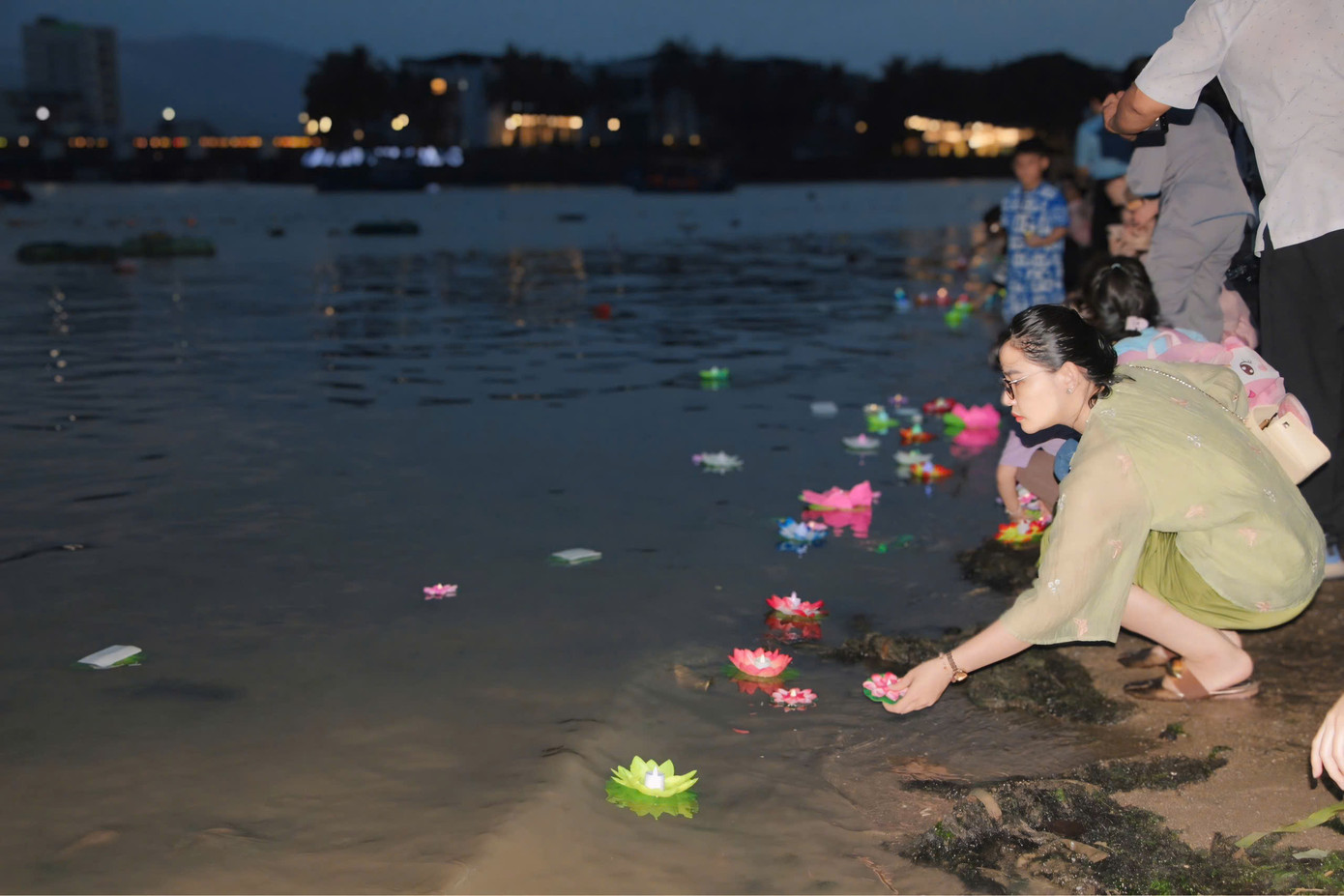 | Lễ thả hoa đăng bên bờ sông Cái cạnh Tháp Bà Ponagar thu hút sự quan tâm của nhiều người dân và du khách. |