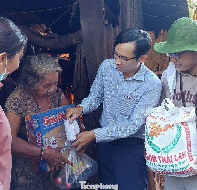 | Đoàn đã đến tận nơi ở của học sinh để tặng quà |