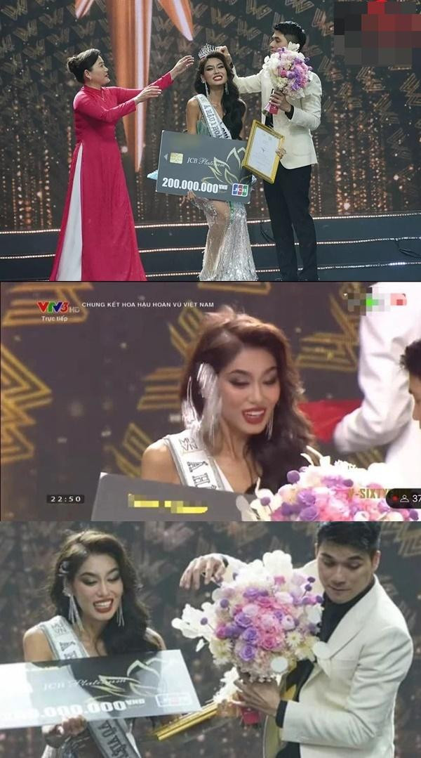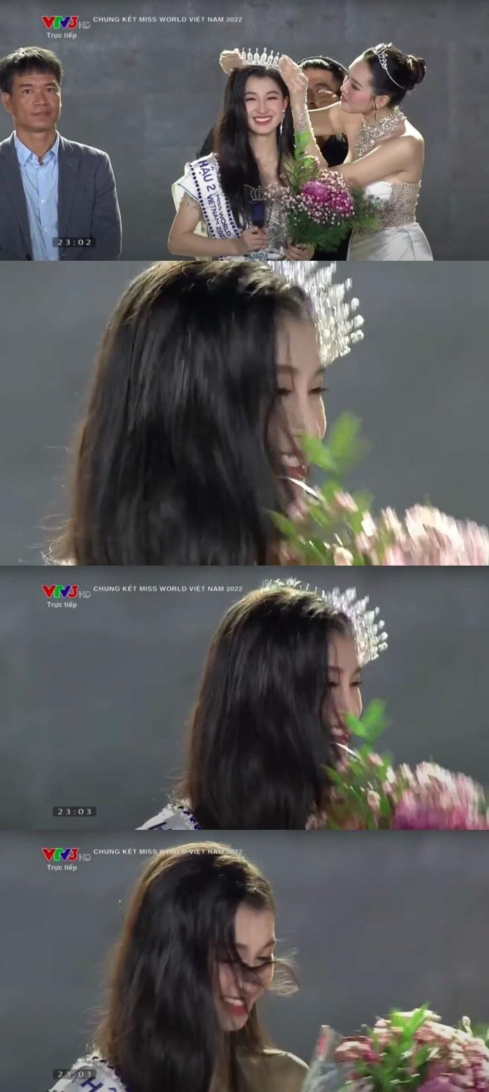 Sự cố hi hữu này không chỉ khiến khán giả bất ngờ mà chính những người có mặt trên sân khấu cũng rất sửng sốt. Rất may là sau đó, mọi người đã nhanh chóng nhặt vương miện lên và đeo lại cho Phương Nhi cẩn thận.