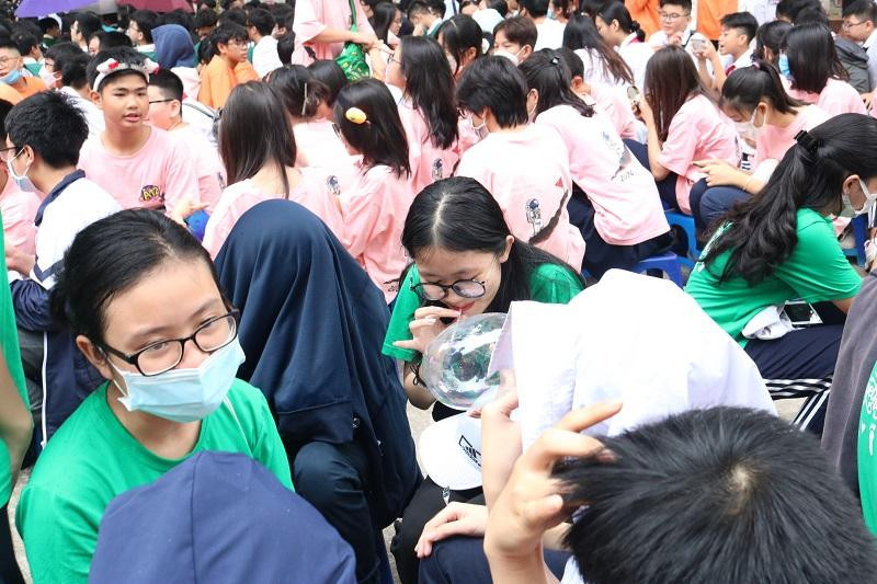 Video nhìn lại hành trình 50 năm của trường THCS Đống Đa được trình chiếu khiến các bạn học sinh thích thú. Có bạn "hóng" cô giáo dạy mình sẽ xuất hiện ở phần nào, có teen hùa nhau trêu đùa khi cậu bạn/ cô bạn ngồi cạnh vô tình xuất hiện trong video.