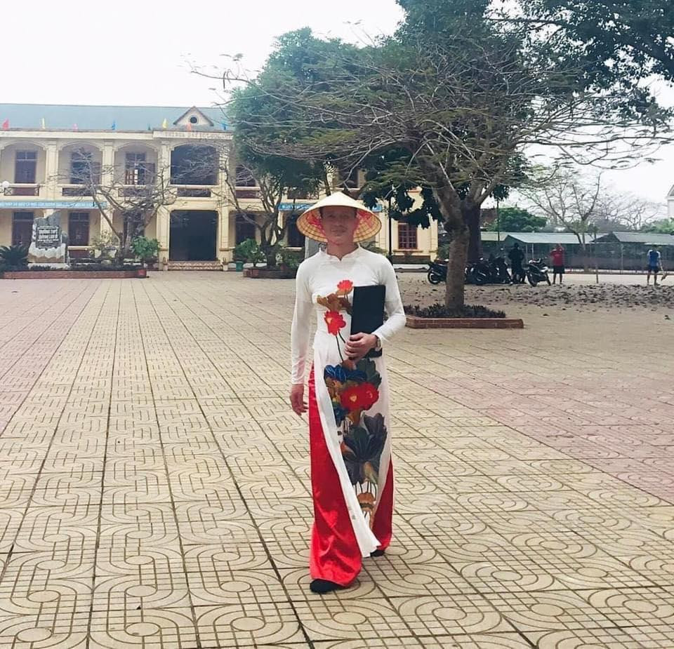 Đáng chú ý, không chỉ có hội chị em phụ nữ hưởng ứng nhiệt tình hoạt động này, mới đây trên mạng xã hội xuất hiện loạt hình ảnh chụp lại một thầy giáo diện trang phục áo dài nữ tại trường học. Được biết, đây là thầy Hồ Phan Ngọc, hiện đang công tác tại trường THPT Quỳnh Lưu 4, Nghệ An.