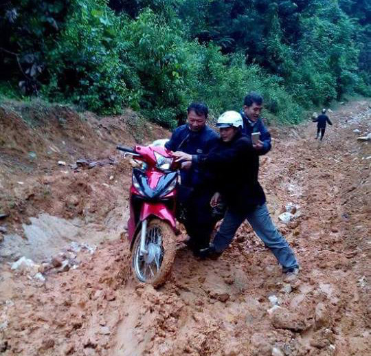 Ngôi trường Tiểu học Tri Lễ 4 (xã biên giới Tri Lễ, Quế Phong, Nghệ An) nằm cheo leo, heo hút trên những bản làng lâu đời của người Mông. Cách trung tâm huyện chưa đến 50km nhưng đó là một trong những cung đường hiểm trở và vất vả nhất mà các thầy giáo ở đây phải vượt qua để đến được điểm trường của mình. Con đường cheo leo bám theo sườn núi, mùa khô bụi tung mù mịt, mùa mưa thực sự là “nỗi ám ảnh” dù là những tay lái “lụa” nhất. Bùn đỏ sục quánh, quết dính vào bánh xe, dù có ga hết cỡ có khi bánh cũng chỉ xát vào đường đến tóe khói mà xe không nhích được đoạn nào.