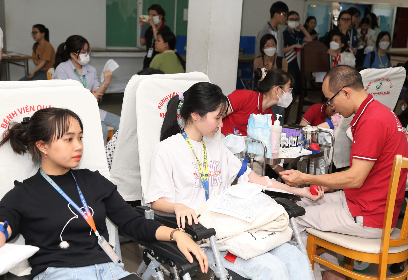 | Nhiều bạn tranh thủ hiến máu trước khi tham gia các hoạt động học tập, ngoại khóa tại trường. |