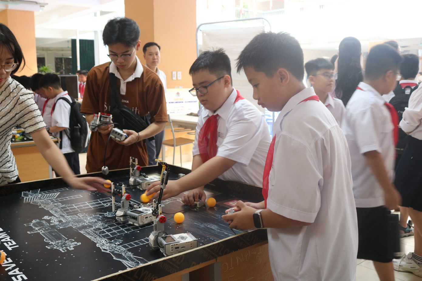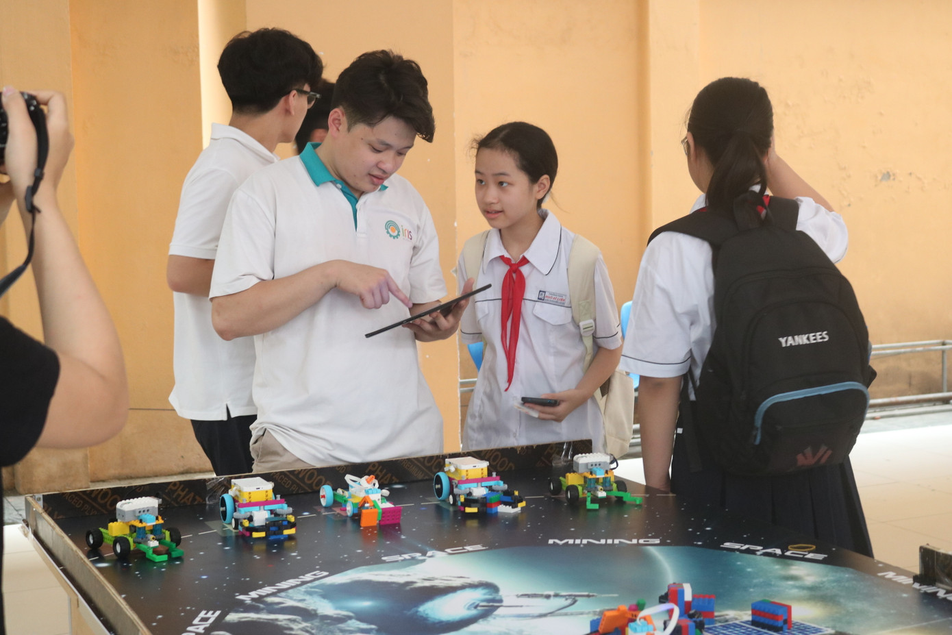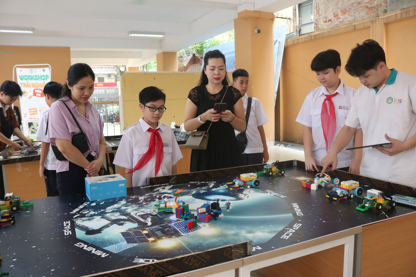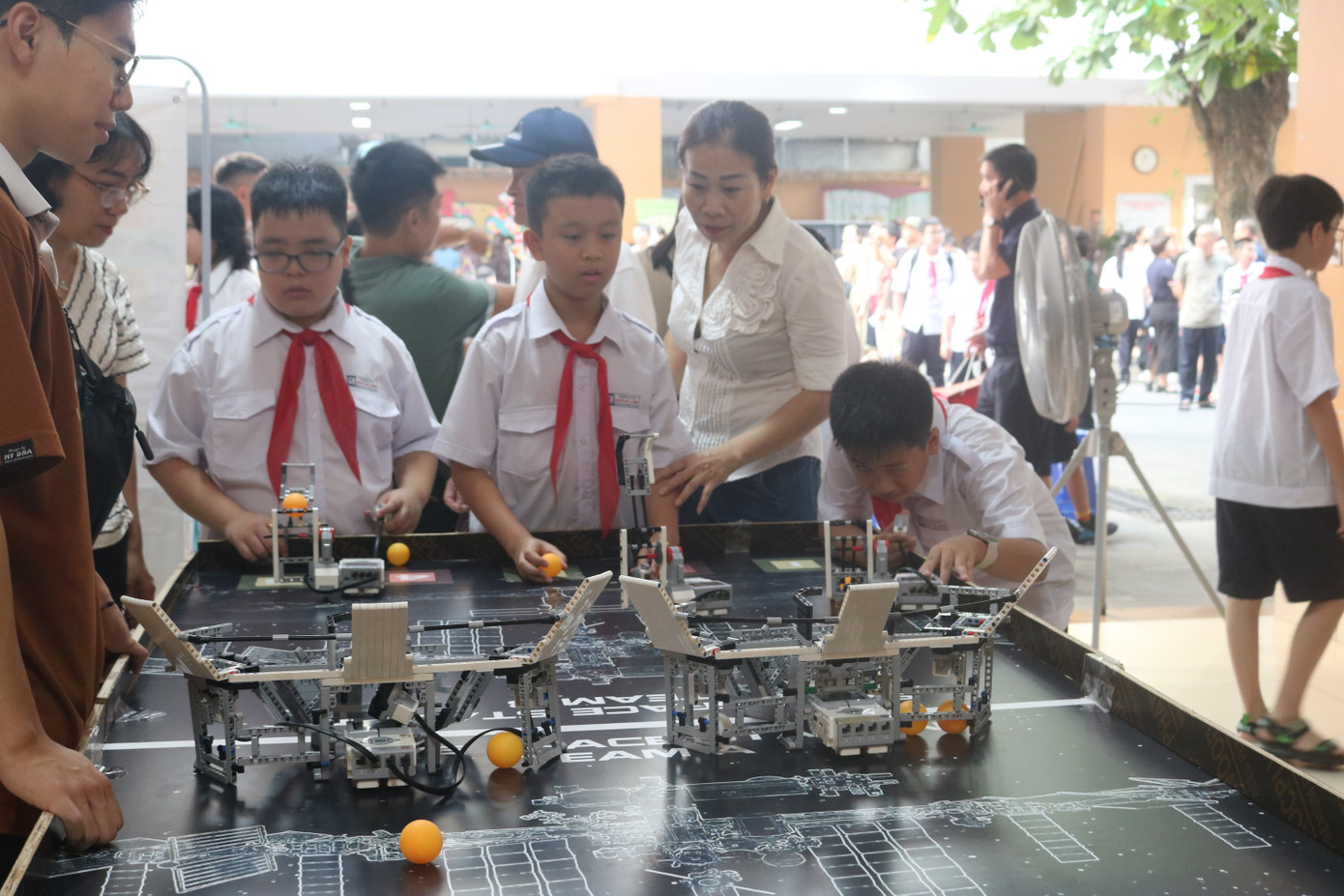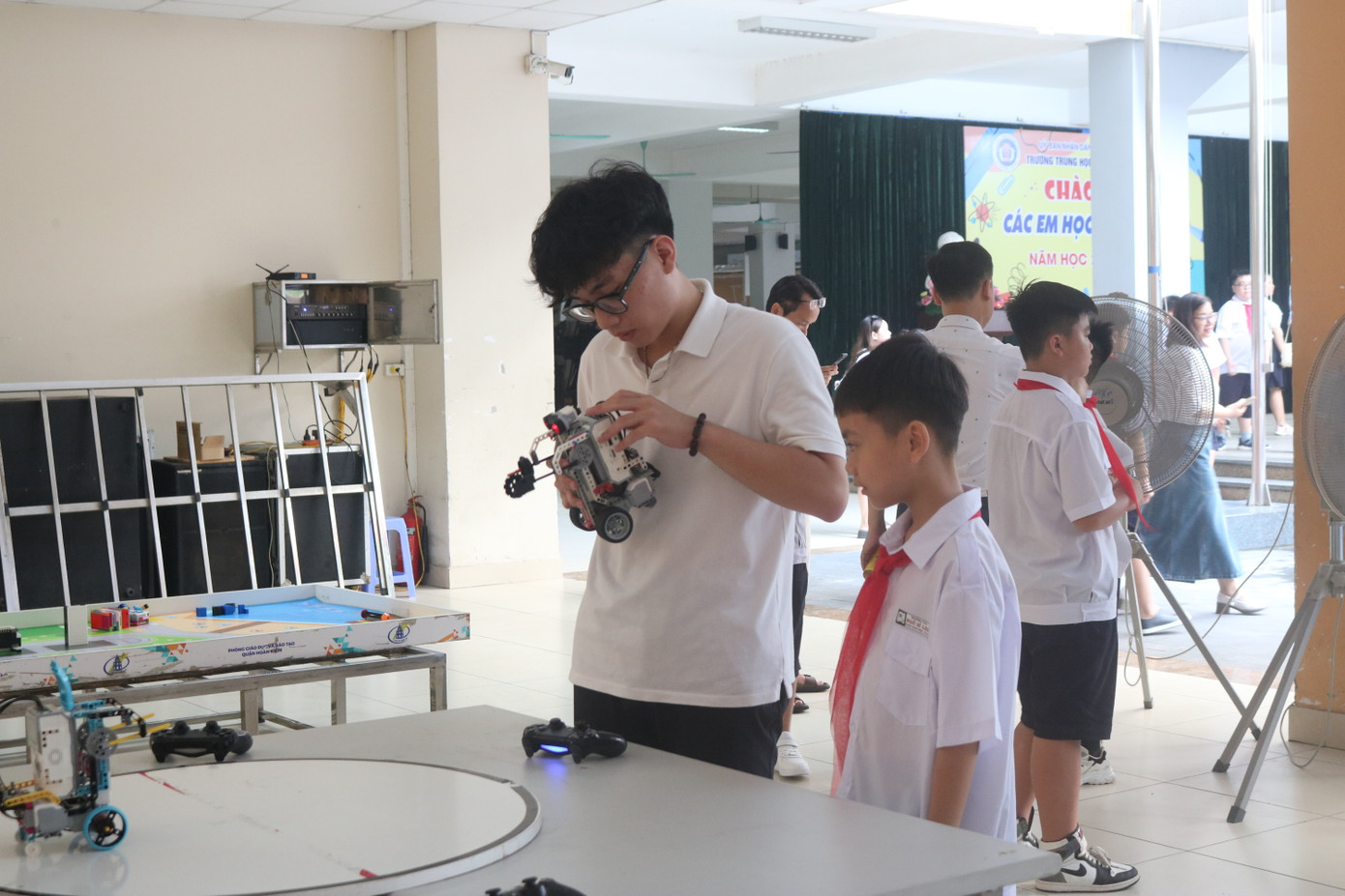 Tại khu khoa học, STEM, tween bị hấp dẫn bởi các chú rô-bốt được lập trình sẵn. Các bạn nhỏ được thử điều khiển, được giải đáp thắc mắc về cách chế tạo, thích thú khi biết đây sẽ là một trong những hoạt động sẽ được học tập, thực hành khi chính thức bước vào năm học mới.