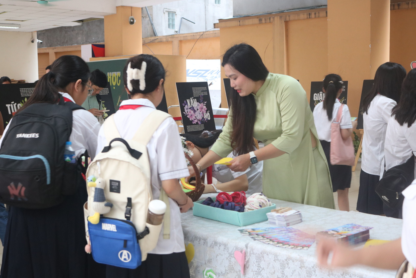 Tween tranh thủ check-in với hashtag, khung chụp ảnh hay phông sân khấu... trước khi bước vào phần lễ chính. "Út cưng" của THCS Ngô Sĩ Liên còn được thầy cô chuẩn bị một phần quà chào đón bất ngờ, chính là các gian hàng trải nghiệm.