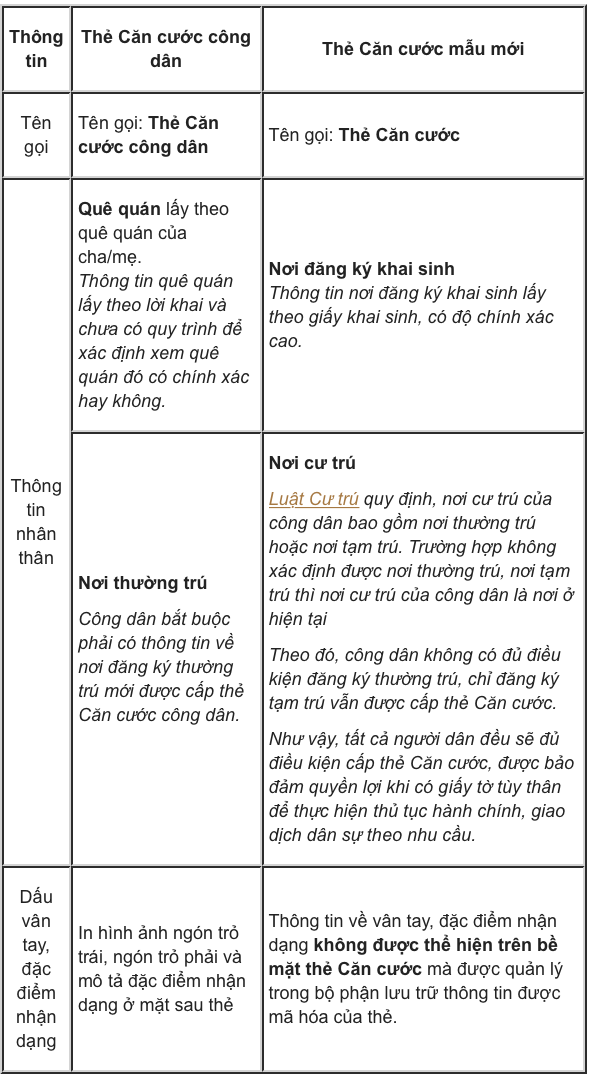 Thẻ Căn cước thay đổi, lược bỏ nhiều thông tin in trên mặt thẻ