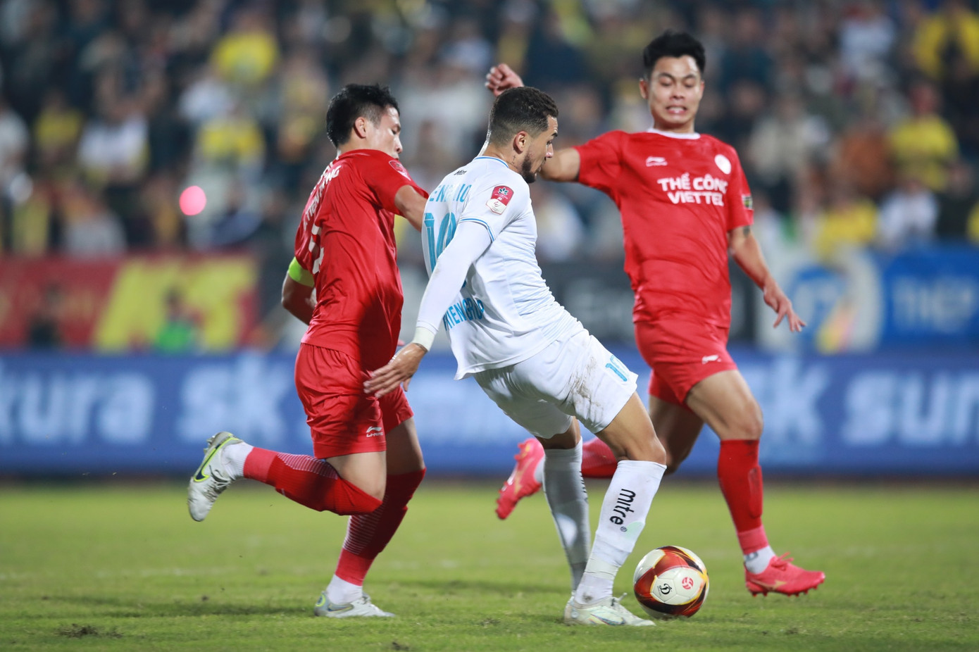 Phút 19: Rafaelson có bóng trong vòng cấm và hậu vệ Viettel khá lúng túng để xử lý, khiến suýt nữa mang đến cơ hội khác cho Nam Định. May cho họ, sóng gió đã trôi qua.