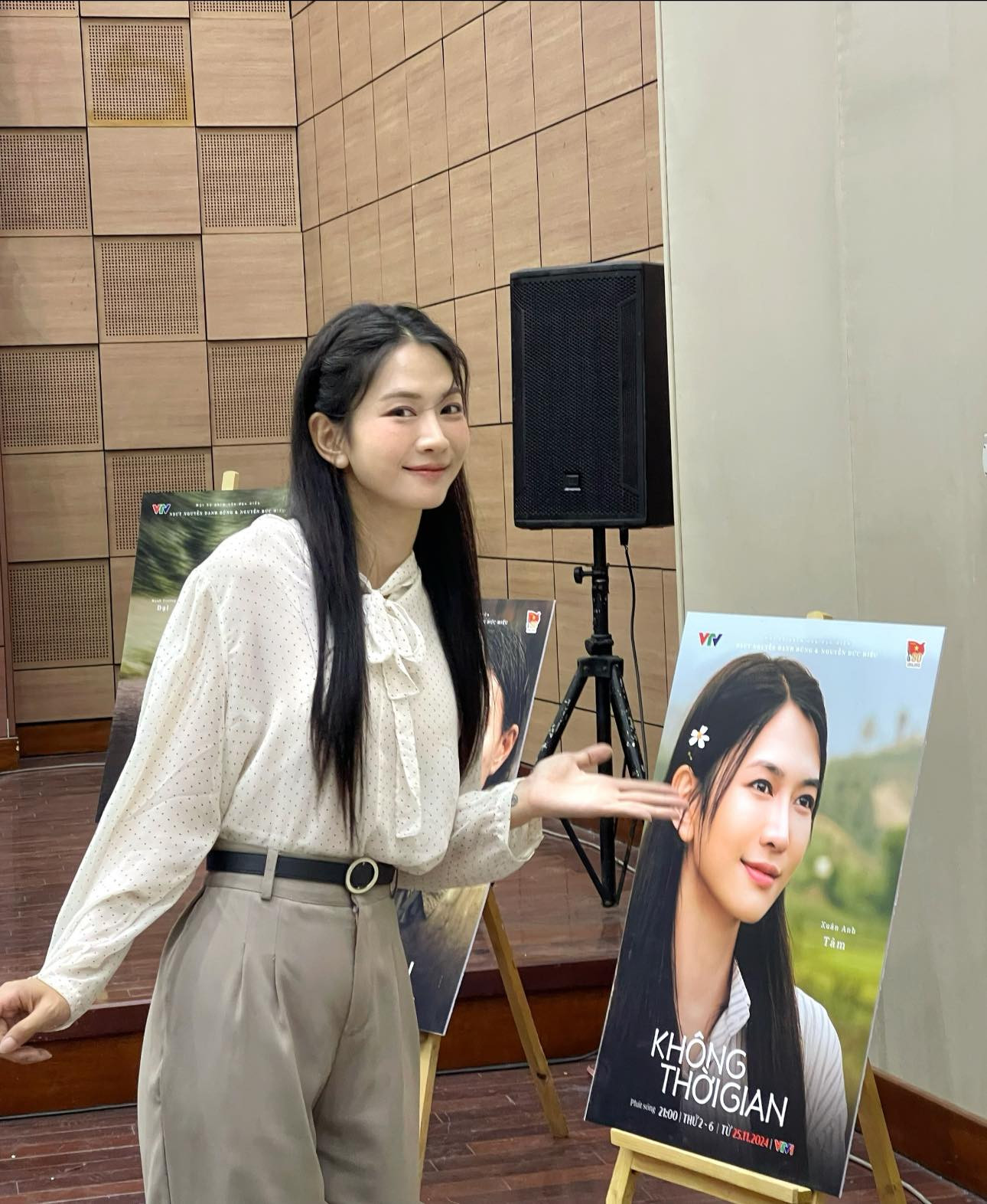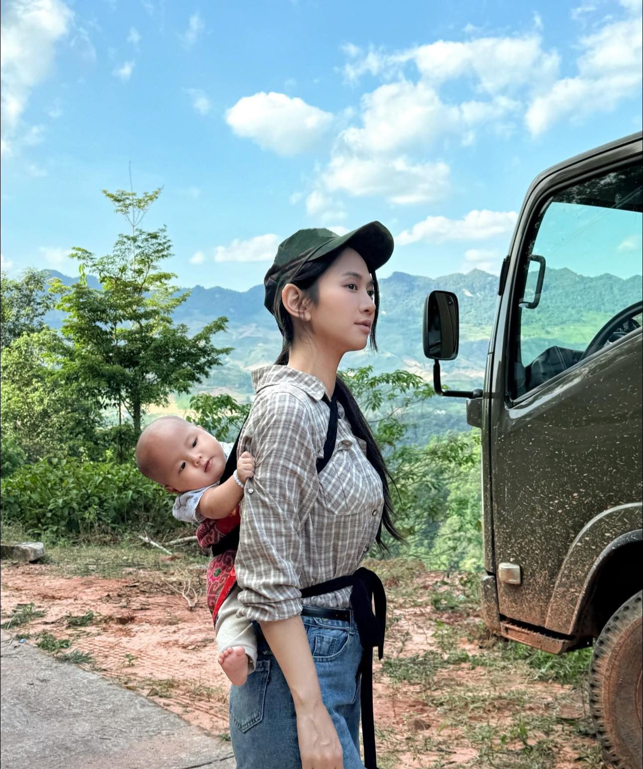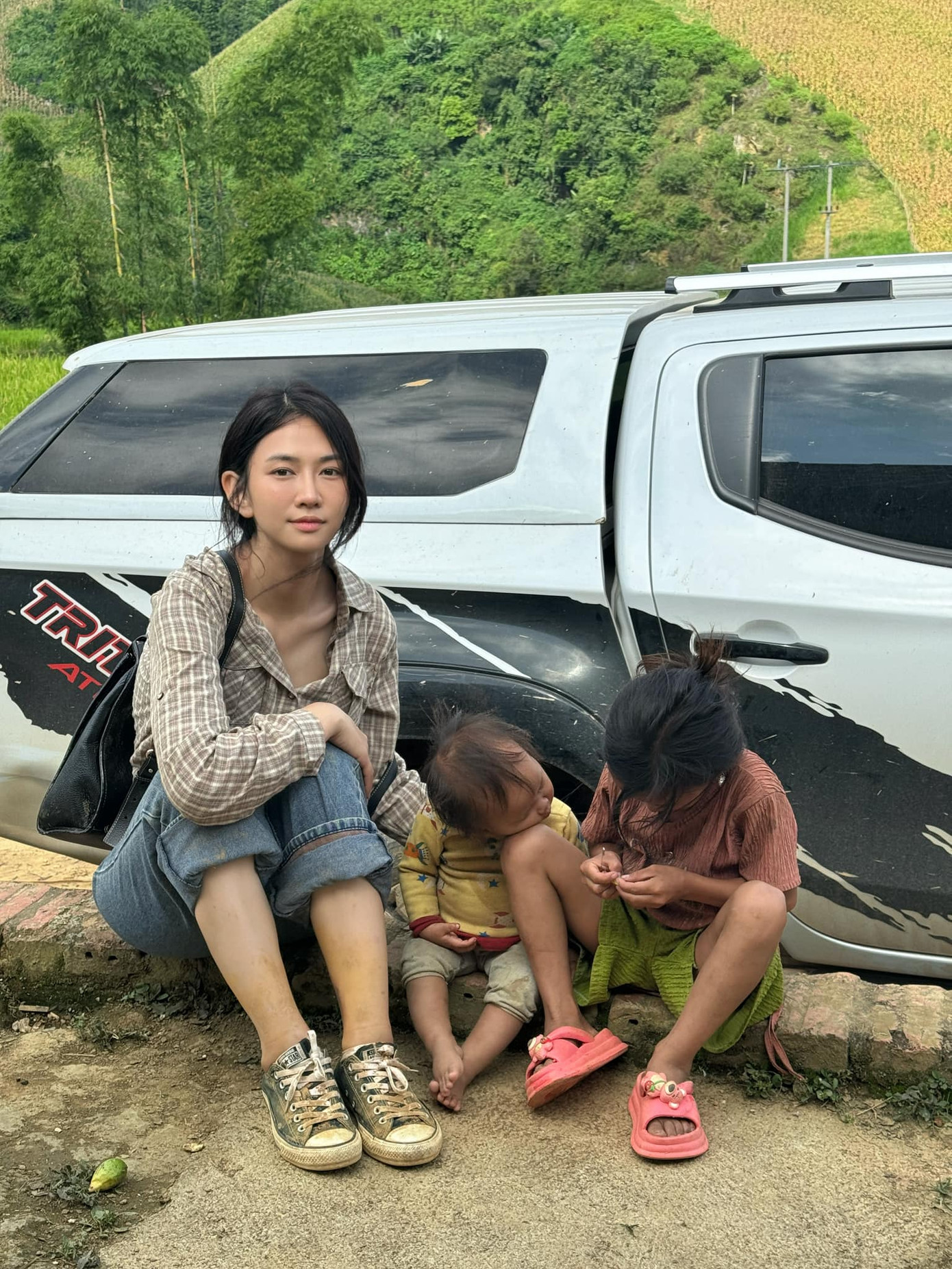 Trên trang cá nhân, nữ diễn viên cũng đăng tải nhiều ảnh hậu trường khi cô đang ngồi bệt dưới đất chơi với các em nhỏ, phút nghỉ ngơi trên đường đi kèm theo rất nhiều lời tâm sự cảm động khi được tham gia một dự án ý nghĩa như Không Thời Gian.