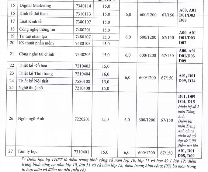 Cùng ngày, trường ĐH Hoa Sen công bố điểm sàn phương thức xét tuyển theo kết quả kỳ thi tốt nghiệp THPT; điểm chuẩn theo phương thức xét học bạ và phương thức xét kết quả Kỳ thi Đánh giá năng lực do ĐHQG Hà Nội, ĐHQG TP. HCM tổ chức.
