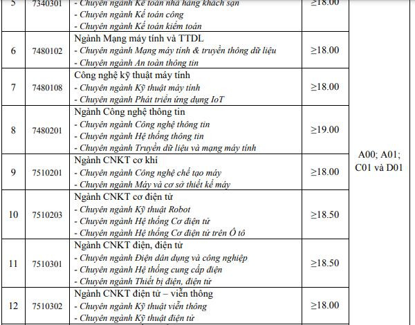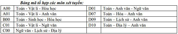Thông tin ngành, tổ hợp đăng ký xét tuyển, chỉ tiêu tuyển sinh chi tiết như sau: