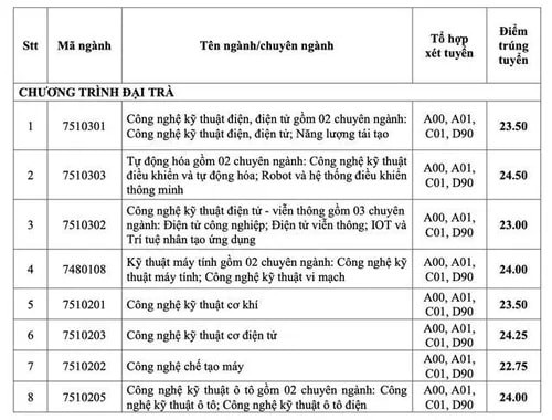 Tại Trường ĐH Công Thương TPHCM, điểm chuẩn năm 2024 với phương thức xét tuyển bằng điểm thi tốt nghiệp THPT cho 34 ngành đào tạo trình độ đại học chính quy, dao động từ 17 đến 24,5 điểm.