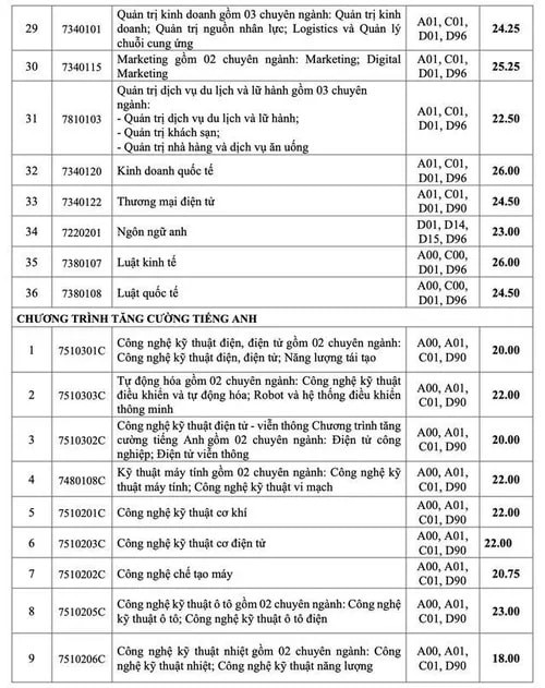 Tại Trường ĐH Công nghiệp TPHCM, hai ngành có điểm trúng tuyển cao nhất là Kinh doanh quốc tế và Luật kinh tế, đều 26 điểm. Nhiều ngành có điểm chuẩn từ 24 điểm trở lên.