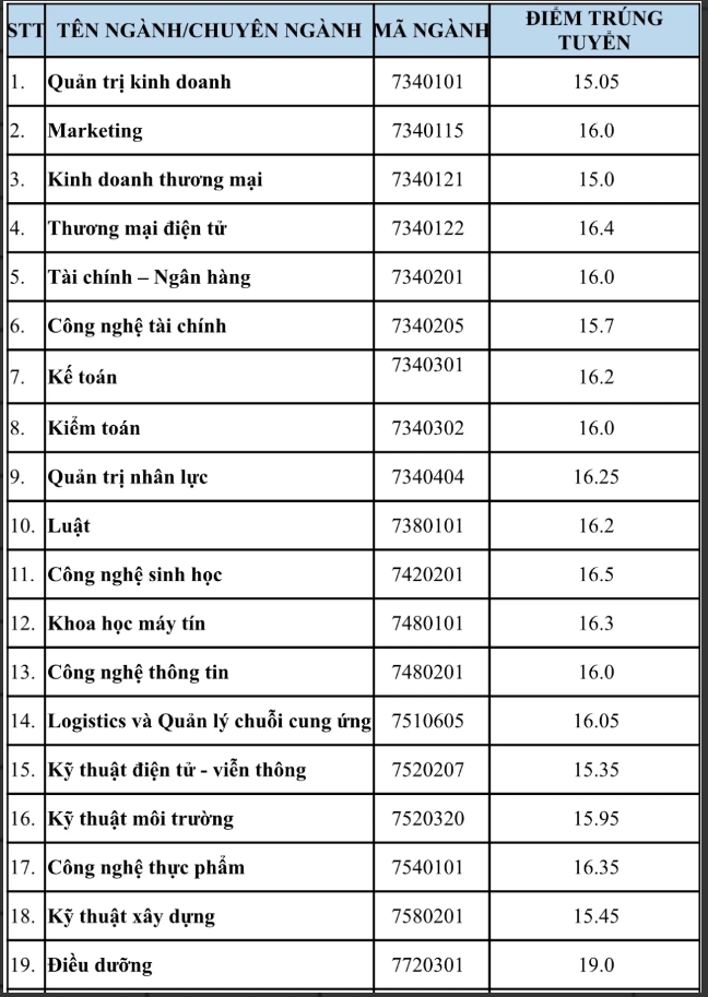 Ngành Thiết kế đồ hoạ có điểm chuẩn cao nhất là 25,54. Nhiều ngành có điểm chuẩn trên 23. Ngành có điểm chuẩn thấp nhất là Kiến trúc xây dựng, phân hiệu ở Đà Lạt với 15,95.