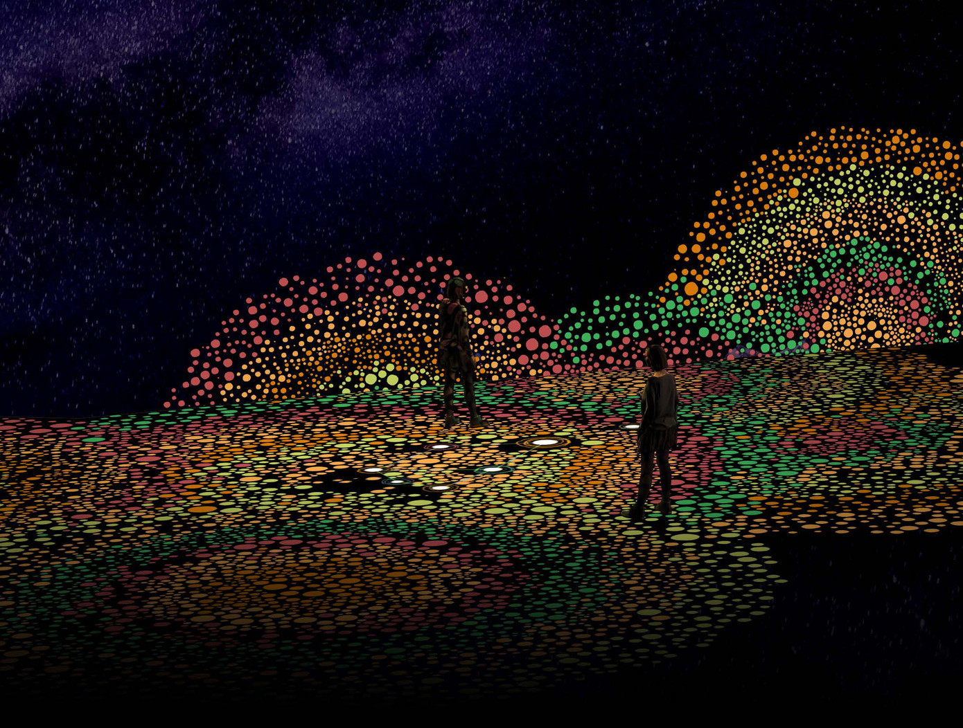 Không gian triển lãm được chia thành nhiều phần khác nhau để kể về những chặng đường của các sinh vật di chuyển từ Tây sang Đông khắp lục địa Úc. Với hơn 300 bức tranh, bài hát và màn hình chiếu kết hợp cùng ánh sáng “ảo tung chảo”. Đây hứa hẹn sẽ là trải nghiệm đáng nhớ dành cho các teen.