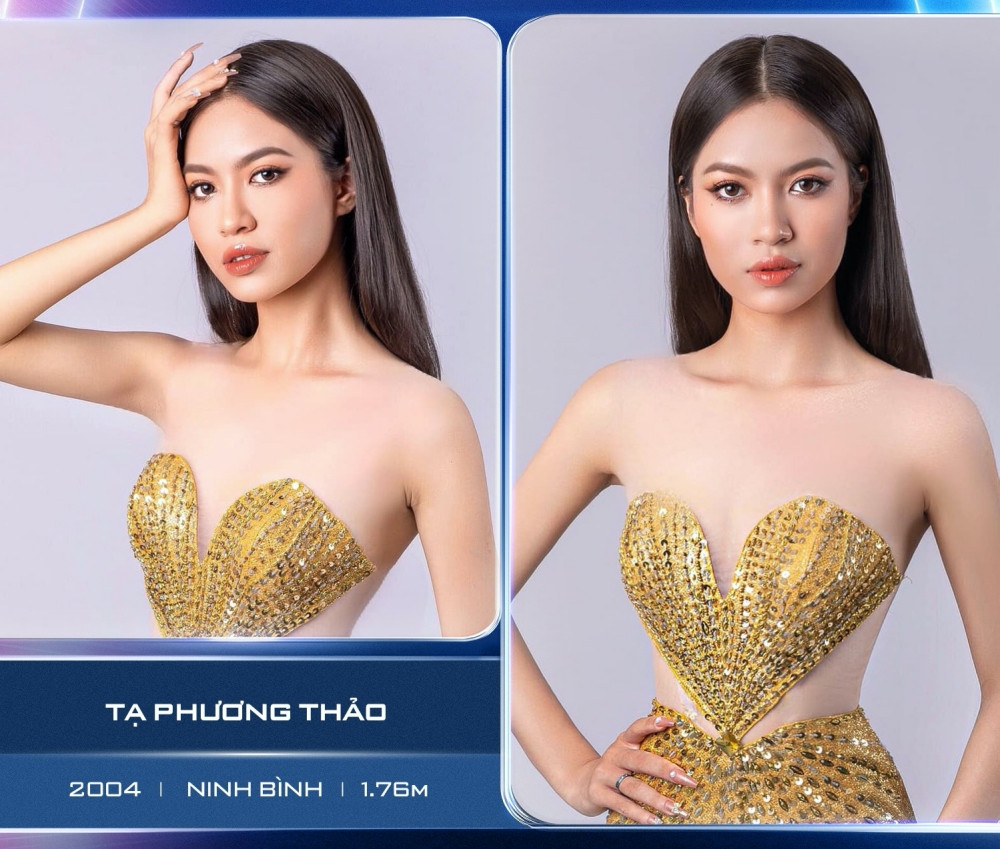 Tạ Phương Thảo 19 tuổi, sở hữu chiều cao 1m76, sinh viên trường Đại học Kinh tế Quốc dân được đánh giá sẽ tiến xa hơn tại Miss Cosmo Vietnam 2023.