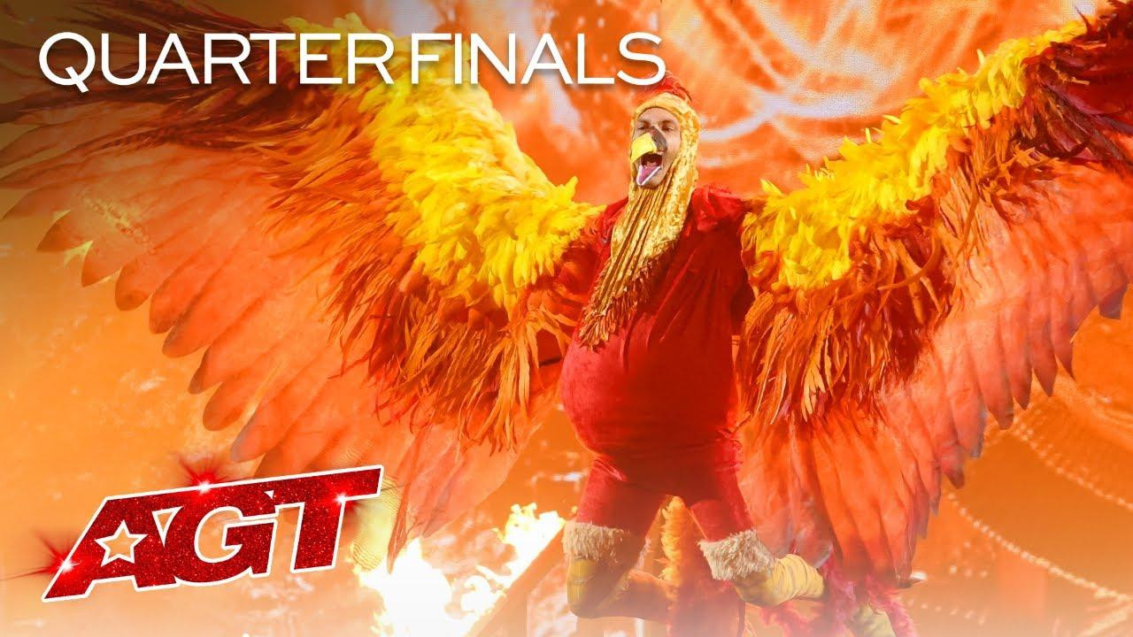 Làm náo loạn đêm tứ kết của America’s Got Talent, Sethward bước lên sân khấu trong trang phục một con công khổng lồ. Anh chàng ngã nhào xuống cầu thang trước khi vô ý tự thiêu bằng dàn pháo hoa bao quanh. Trong tiếng reo hò của khán giả, Sethward bất ngờ được bay lên cao như một con phượng hoàng tái sinh từ đống tro tàn.