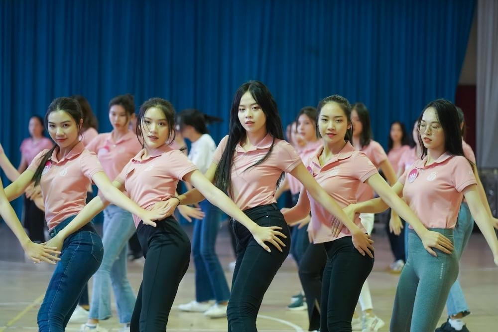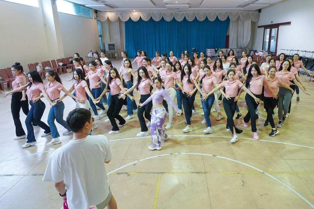 Nội dung của buổi tập là màn đồng diễn - bài biểu diễn chính thức trên sân khấu đêm Chung khảo sẽ diễn ra vào ngày 26/11.