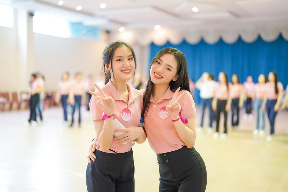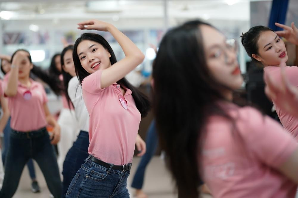 Tập luyện vất vả, nhưng các cô gái vẫn rất tươi tắn và sẵn sàng tạo dáng trước ống kính.
