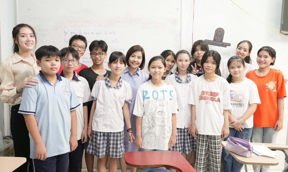 Tiếp tục chuỗi dự án nhân ái, hai thí sinh Trần Lê Mai Chi (SBD 052) và thí sinh Phan Phương Oanh (SBD 378) đã mang đến câu chuyện truyền cảm hứng về người thầy giáo công nhân Hoàng Trọng Khánh 13 năm miệt mài dạy học miễn phí cho trẻ em nghèo.