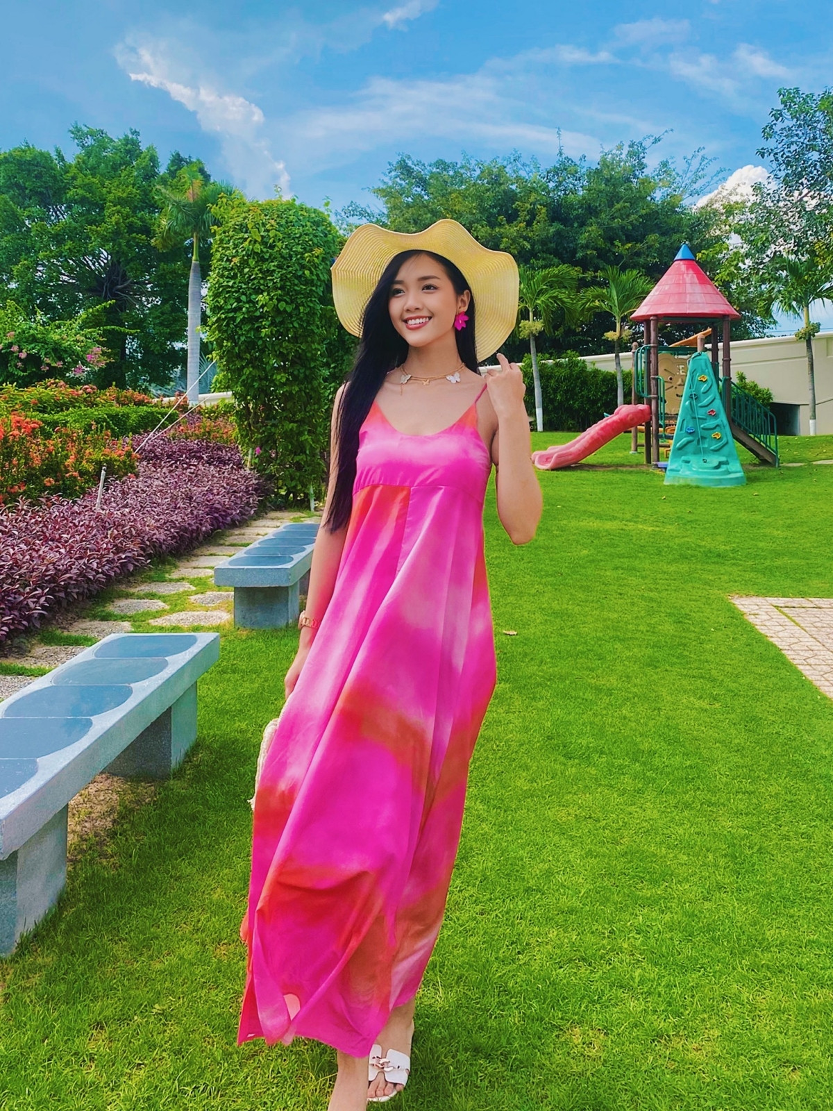 Người đẹp sở hữu chiều cao 1m70 cùng vóc dáng cân đối, phong cách thời trang trẻ trung, màu sắc nổi bật.
