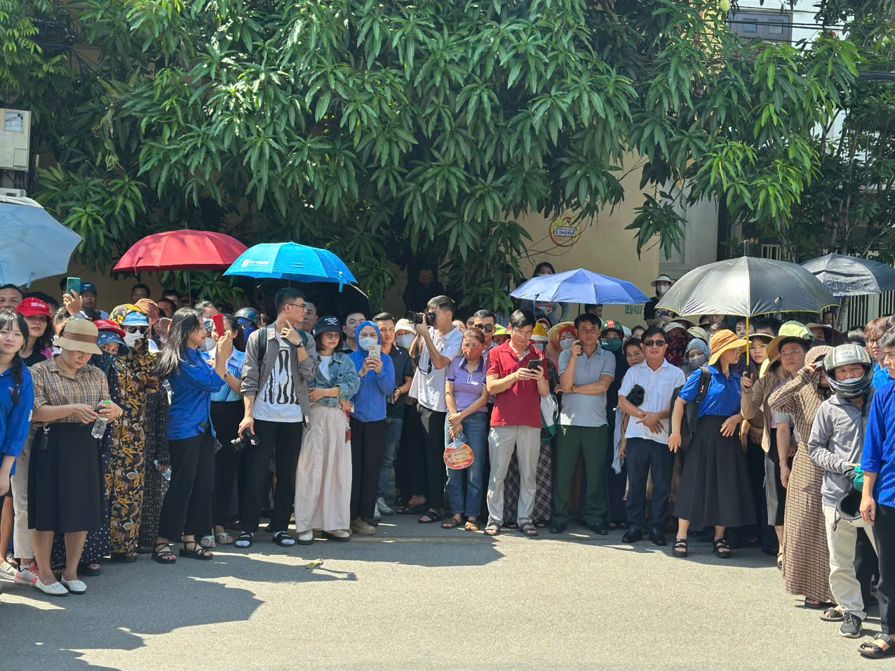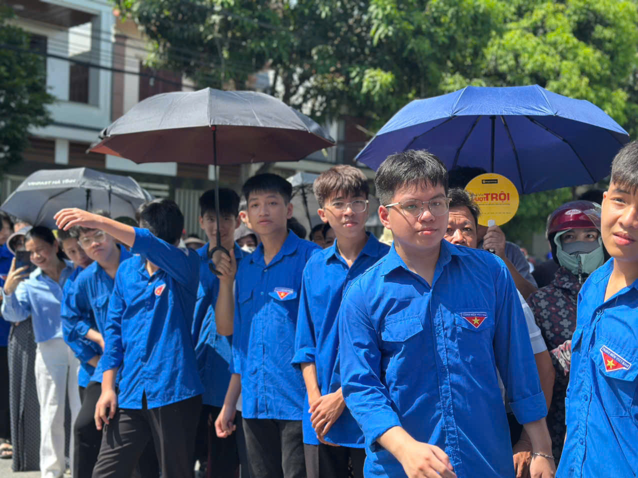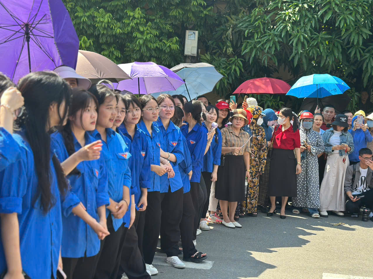 Mặc dù thời tiết nắng nóng, oi bức, nhưng hàng trăm phụ huynh vẫn kiên nhẫn đứng chờ ngoài cổng trường với tâm trạng lo lắng, hồi hộp, ngóng chờ con em mình bước ra từ phòng thi đầu tiên.
