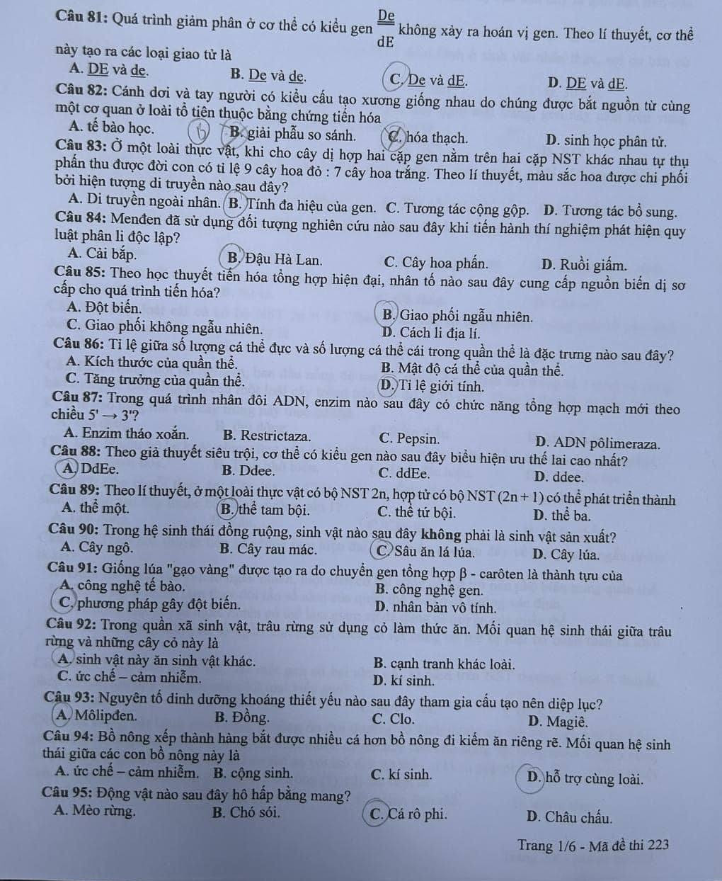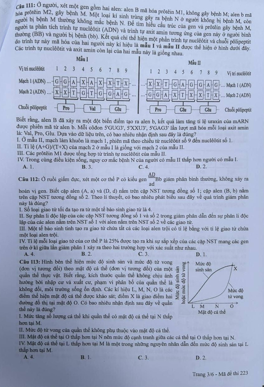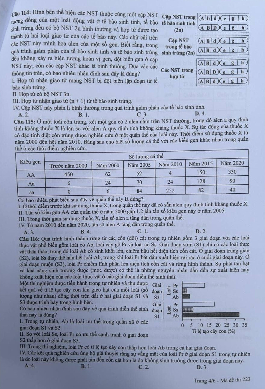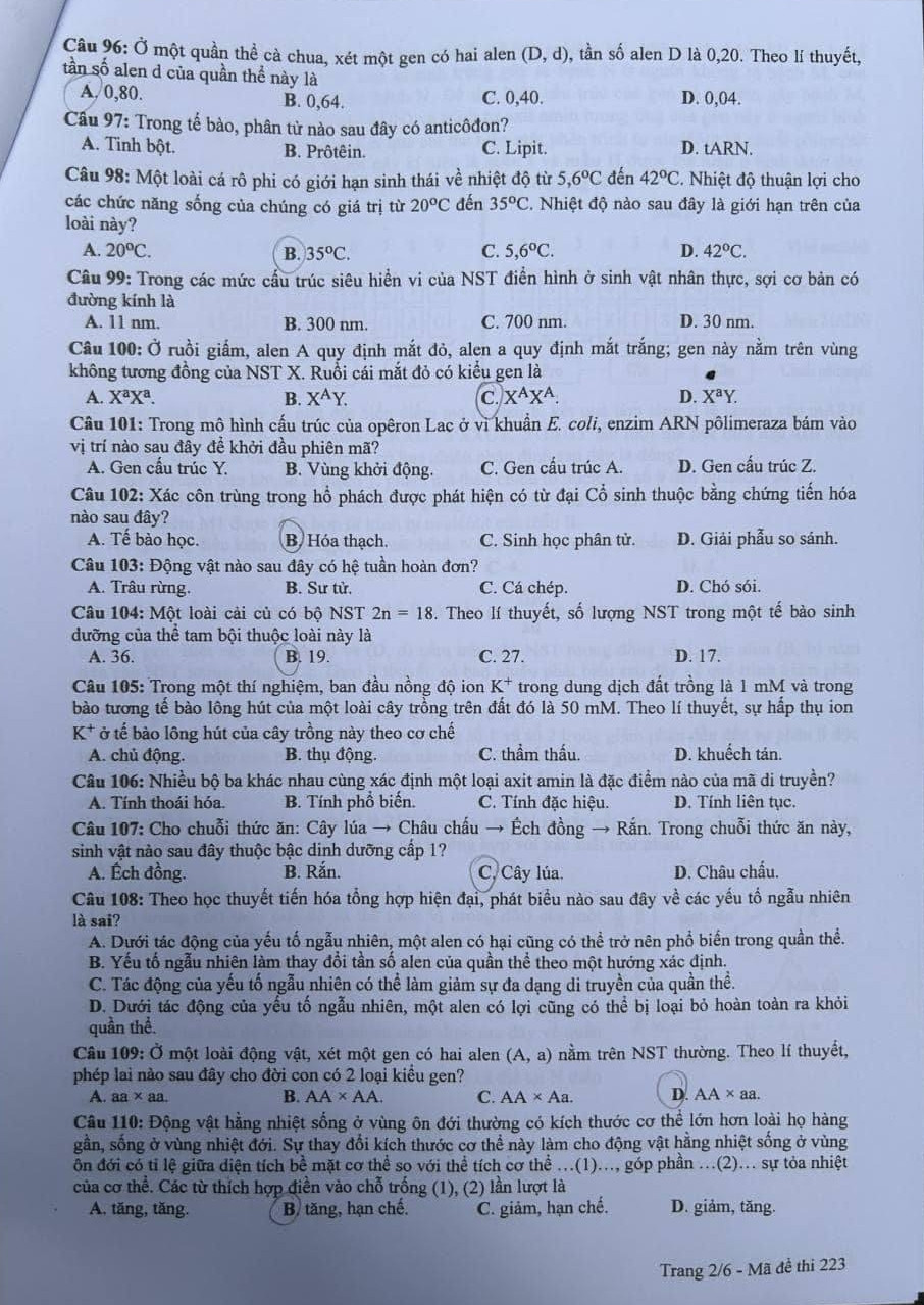 | Đề thi tốt nghiệp THPT Quốc gia năm 2024 môn Sinh học mã đề 223. |