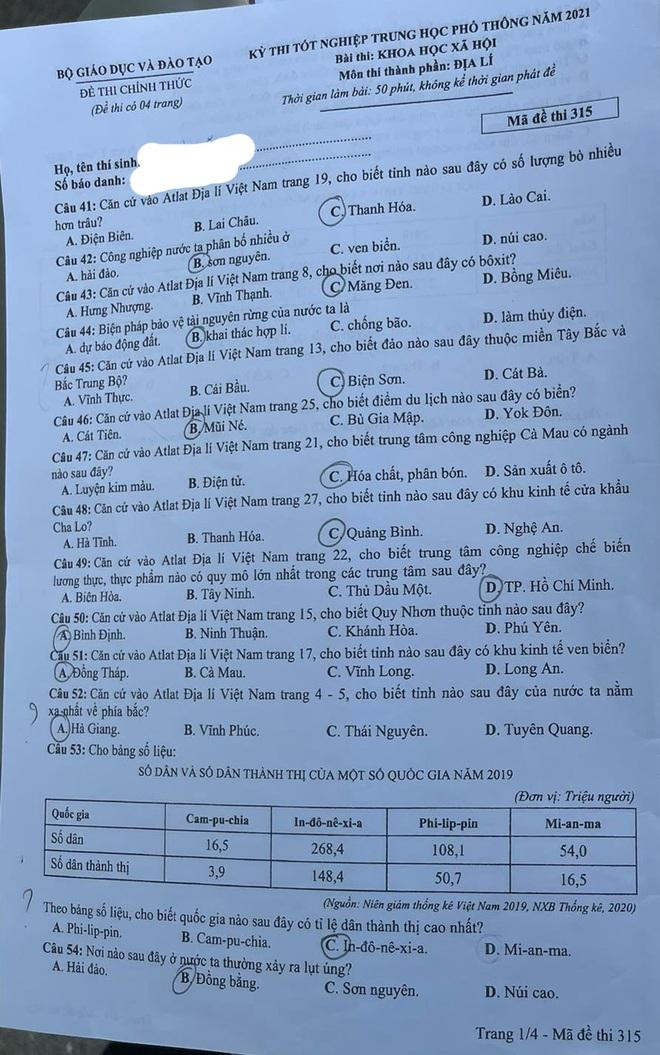 TPO - Sáng nay, thí sinh đã kết thúc buổi thi thứ 3 bằng việc lựa chọn một trong hai bài thi Khoa học Tự nhiên hoặc Khoa học Xã hội. Gợi ý giải đề Địa lý