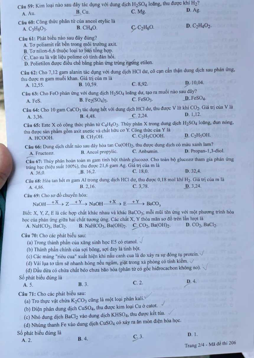 Thi tốt nghiệp THPT: Gợi ý đáp án môn Hóa học