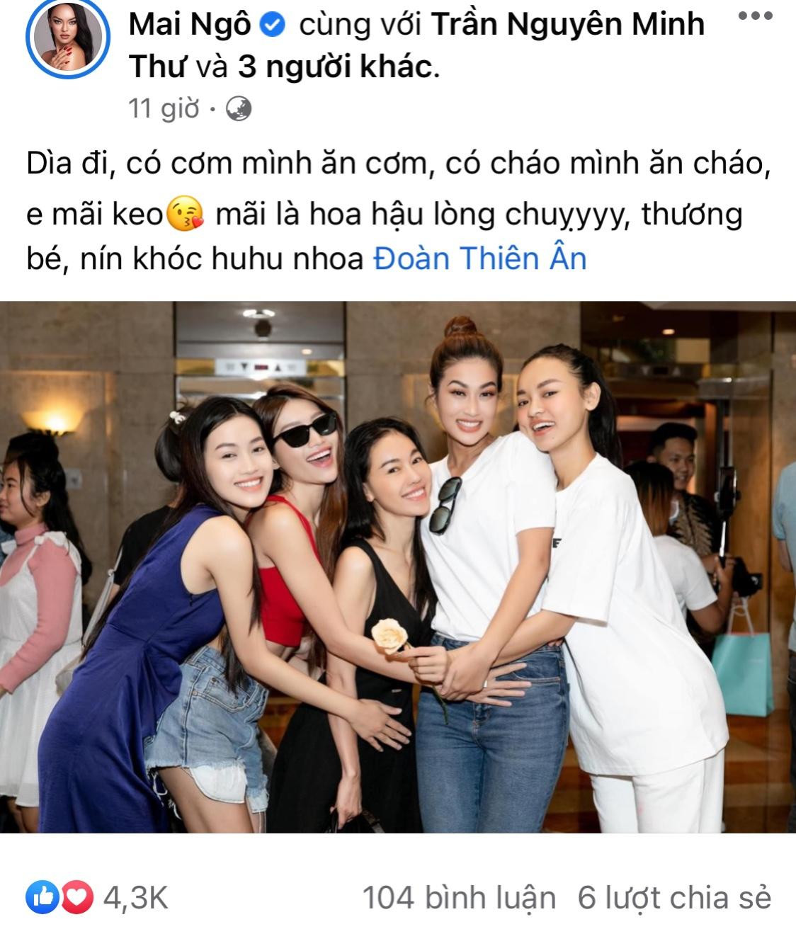 Cư dân mạng đã thể hiện sự an ủi Thiên Ân với loạt bình luận động viên: "Đừng buồn nha, mọi người luôn ủng hộ Ân", "Ân không khóc nha, khi nào chị về sân bay mọi người sẽ ra đón chị nồng nhiệt", "Thương em, em đã chiến thắng trong lòng người Việt Nam rồi",...