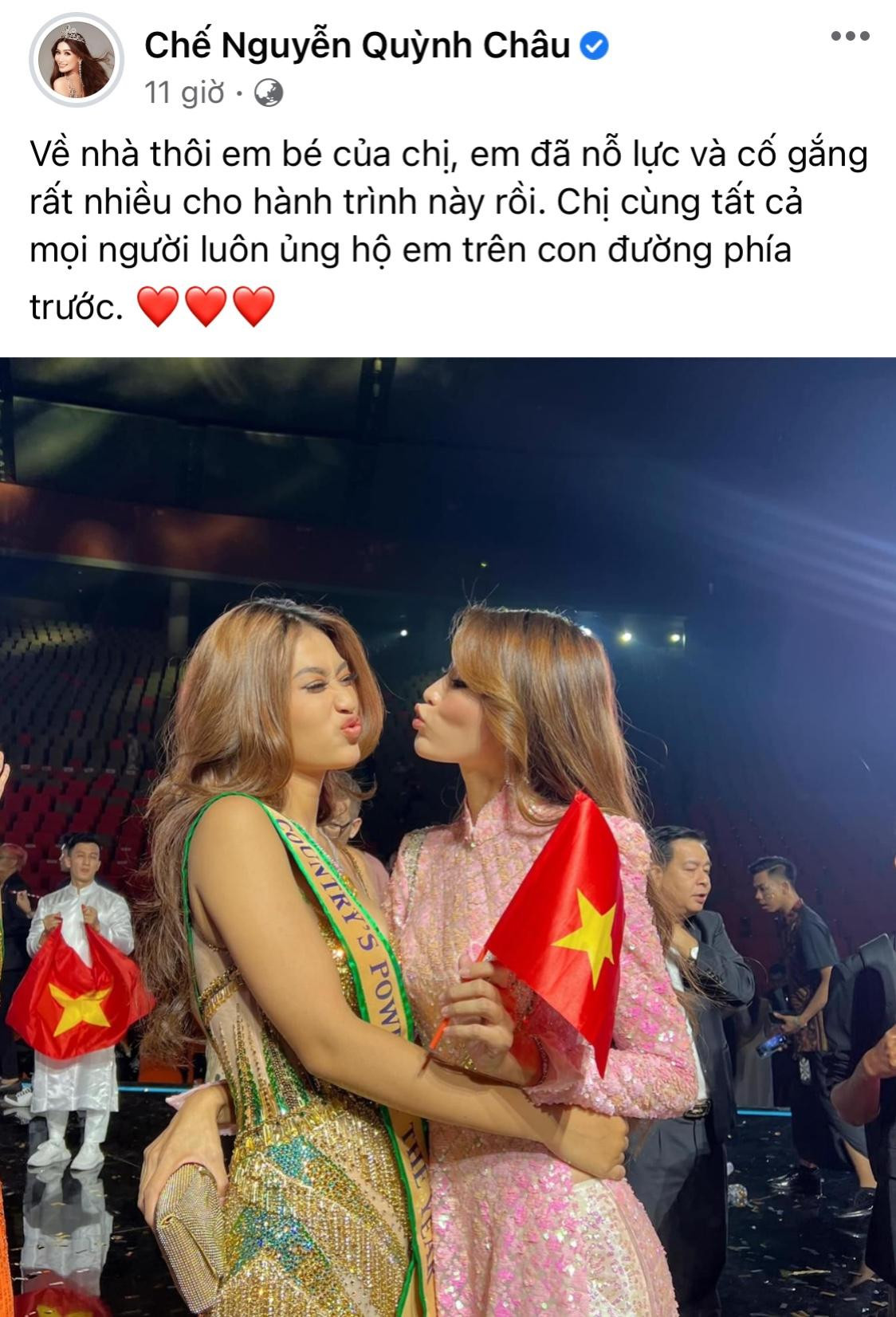 Sau đêm Chung kết Miss Grand International 2022, dàn sao Việt cũng đã bày tỏ sự ủng hộ đối với Thiên Ân. Diễn viên Nguyên Thảo chia sẻ trên Facebook cá nhân: "Về đảm đương nhiệm kỳ MGV kìa, chờ Hoa hậu về nước nha. Thương em đã vất vả, nỗ lực và chịu áp lực rất nhiều. Em đã làm rất tốt rồi".