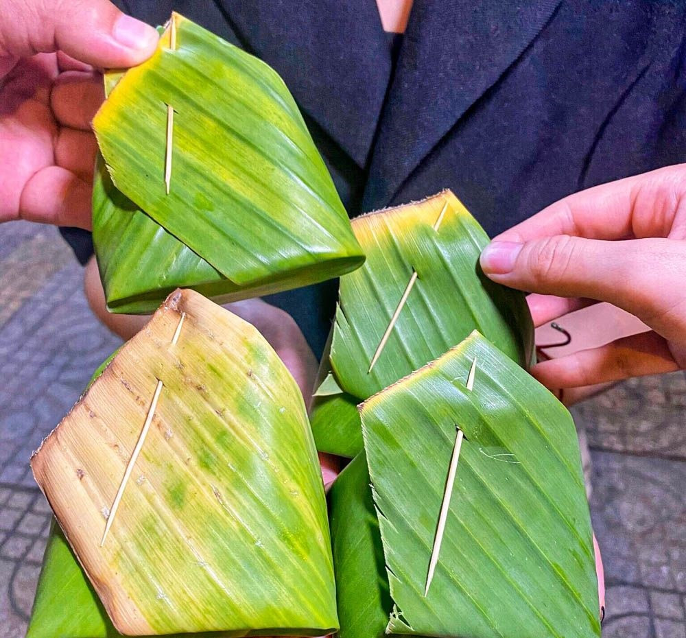 Tại hàng xôi lâu đời này, lúc khách đến đặt món, xôi sẽ được cho vào lá chuối, cố định bằng tăm, đặc biệt không dùng hộp xốp để giữ đúng hương vị của xôi. Từng gói xôi xanh mướt được trưng bày trông rất bắt mắt, vừa nhìn đã thấy ngon miệng. Lúc mở lá chuối, xôi vẫn còn nóng hổi, tỏa hương thơm ngát.