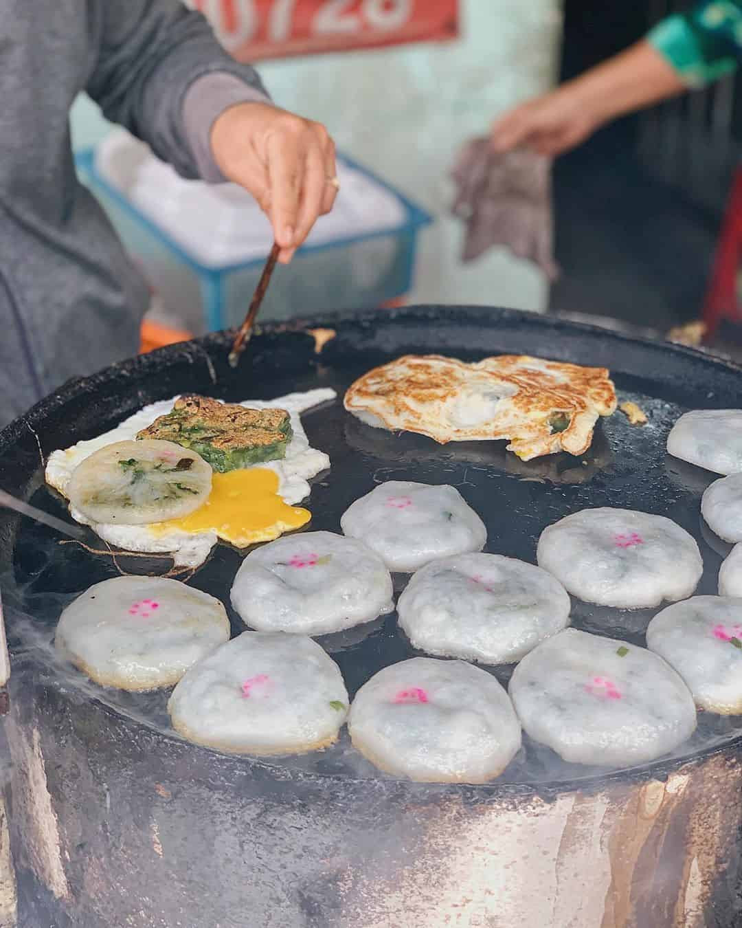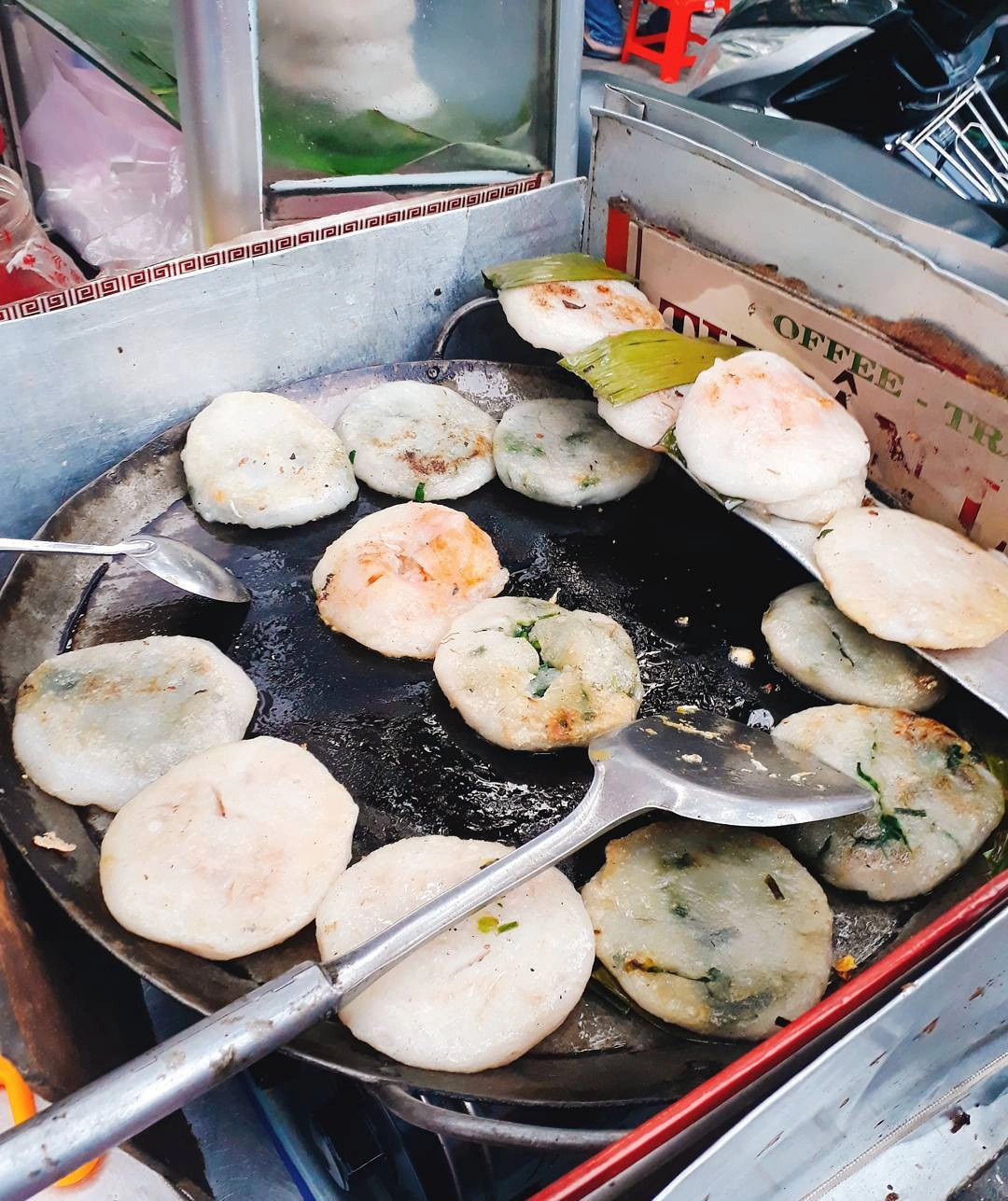Chiếc xe đẩy bánh hẹ tại đây luôn thu hút đông đảo tín đồ ẩm thực ghé thăm. Đây là một trong những món ăn đặc sắc của người Hoa tại Chợ Lớn. Bạn có thể ăn ngay tại chỗ hoặc mua mang về, nhưng ăn tại chỗ luôn được đánh giá là ngon hơn. Bánh ở đây có giá cực “hạt dẻ”, chỉ 7 ngàn đồng/ cái với ba loại nhân là củ sắn, khoai môn và hẹ cho bạn thưởng thức.