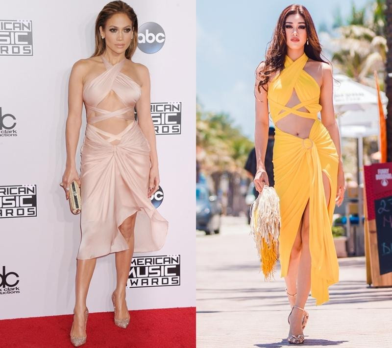 Chiếc váy thậm chí còn được nhận xét là thiết kế hiểm hóc hơn nhiều so với chiếc váy mà Hoa hậu Khánh Vân mặc. Năm đó, “Nữ hoàng nhạc dance” Jennifer Lopez nhận được vô vàn lời khen vì khoe được thân hình săn chắc, đẹp cực phẩm trong một thiết kế lụa mềm mại, màu sắc dịu dàng.