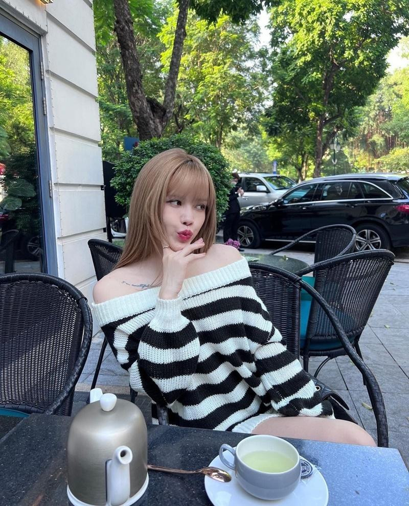 MLee diện trang phục đơn giản, người đẹp kết hợp áo sơ mi thiết kế đắp tà nữ tính cùng quần đùi tone-sur-tone.