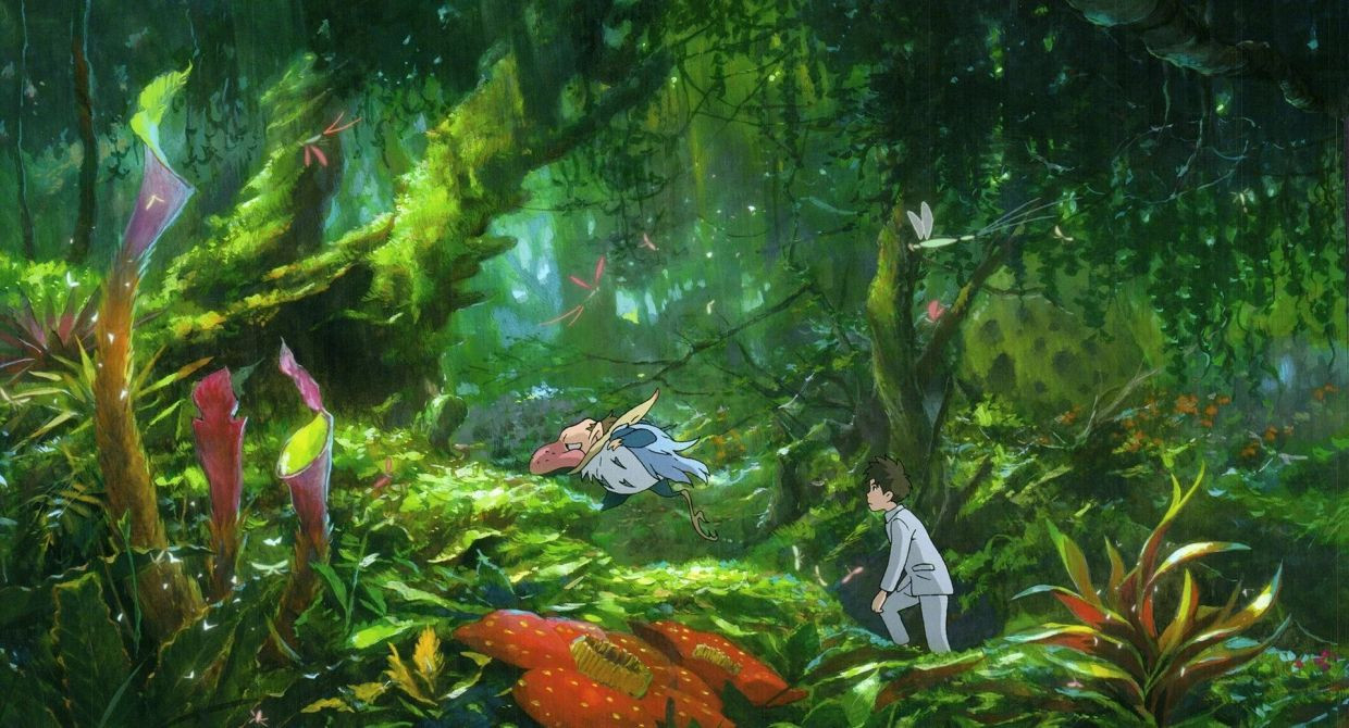 Theo sự dẫn lối của chim diệc, Mahito vào trong một tòa tháp bỏ hoang và bị dịch chuyển đến không gian xa lạ. Nơi đây có đại cảnh thiên nhiên hùng vĩ, các sinh vật kỳ bí và loạt hiệu ứng ma thuật khiến người xem không khỏi mê mẩn và liên tưởng đến "vườn địa đàng".