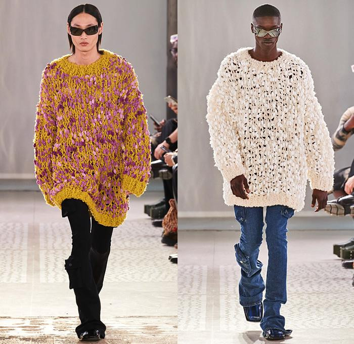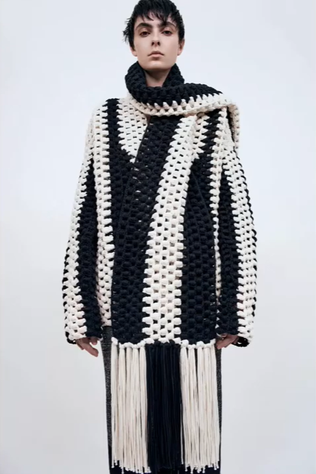 Đồ len đan móc cũng xâm chiếm tuần lễ thời trang Fashion Week 2023 với những thiết kế ấn tượng, lạ mắt.