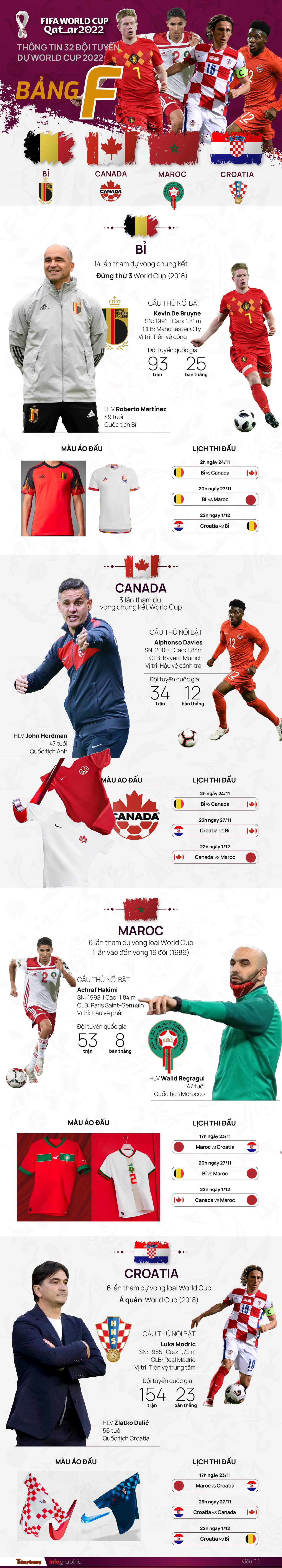 Google News Thông tin 32 đội tuyển dự World Cup 2022: Bảng F